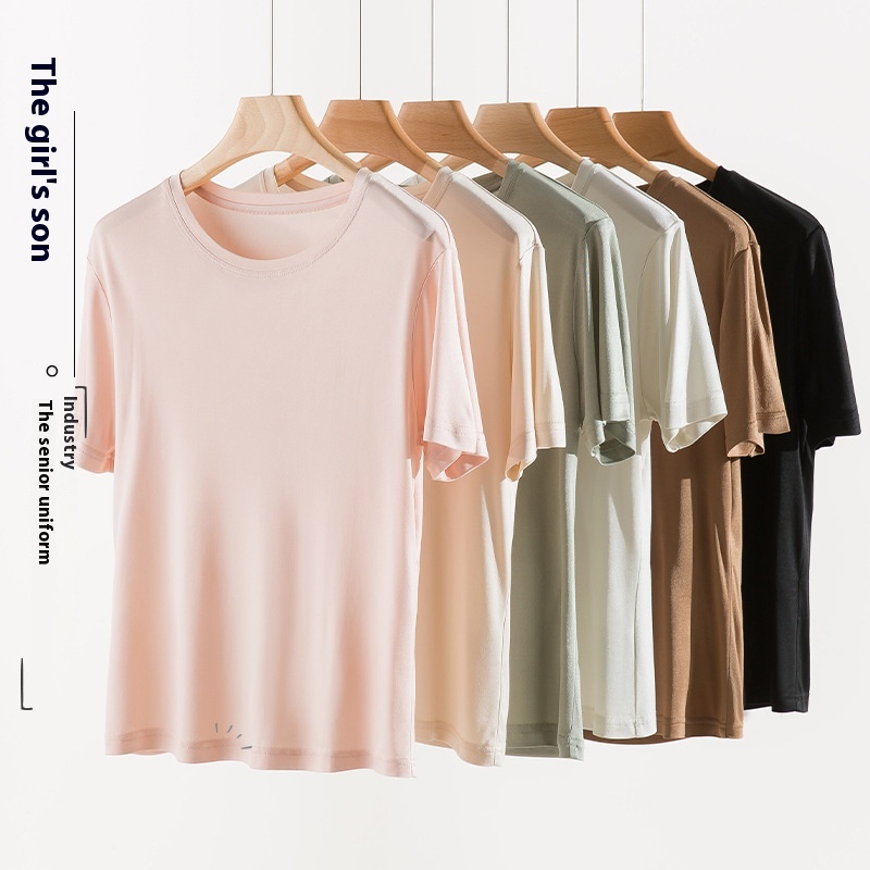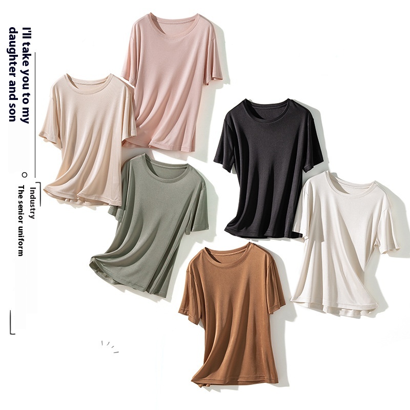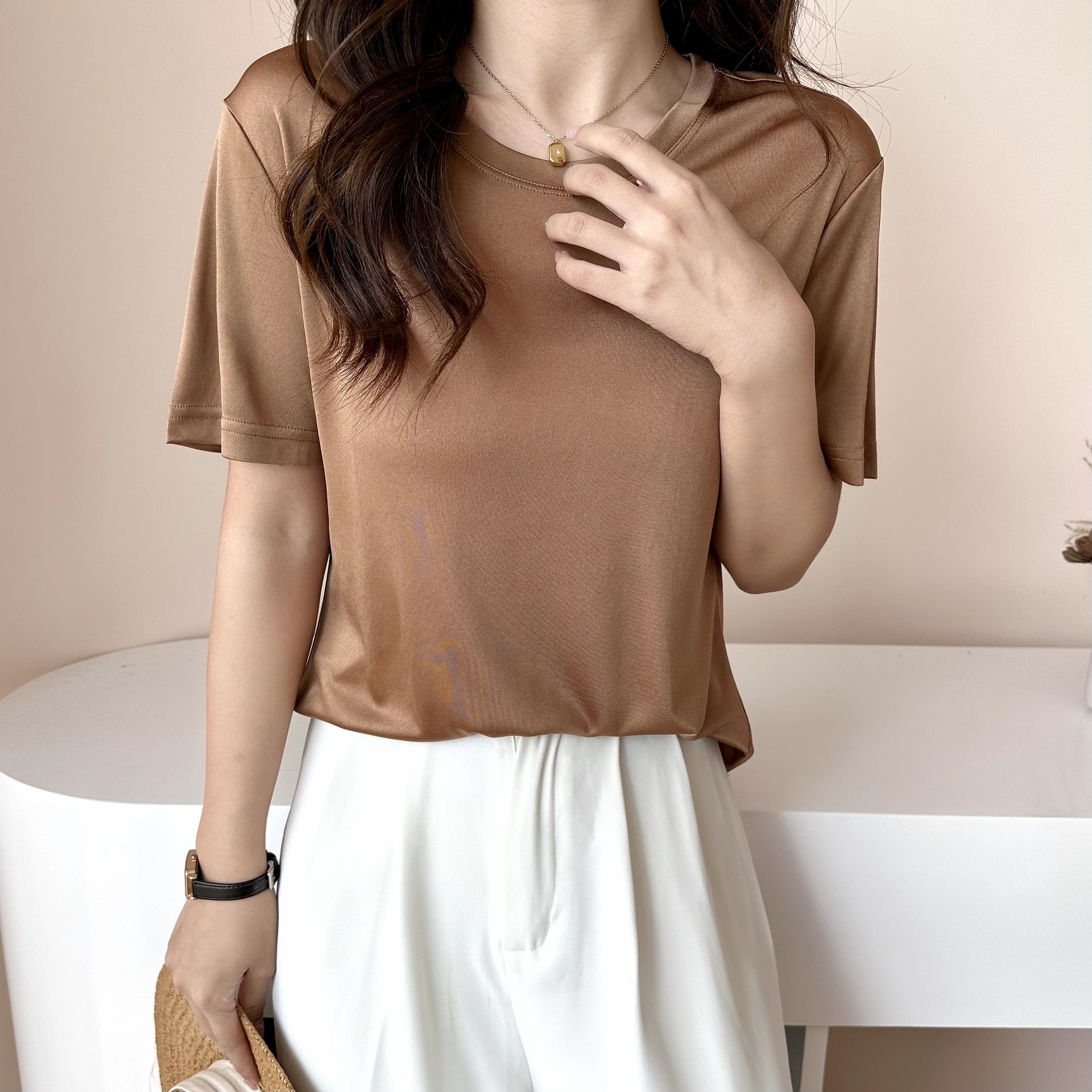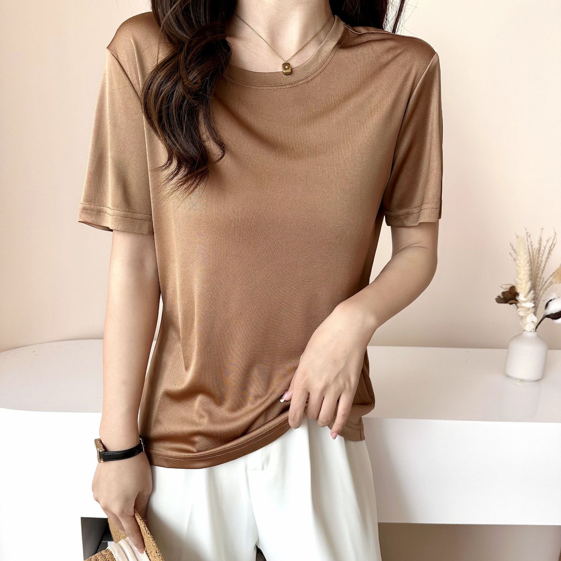 Summer Casual Fashion Inner Wear Mercerized Slim Simple Commuting Acetate Round Neck Short-sleeved T-shirt For Women