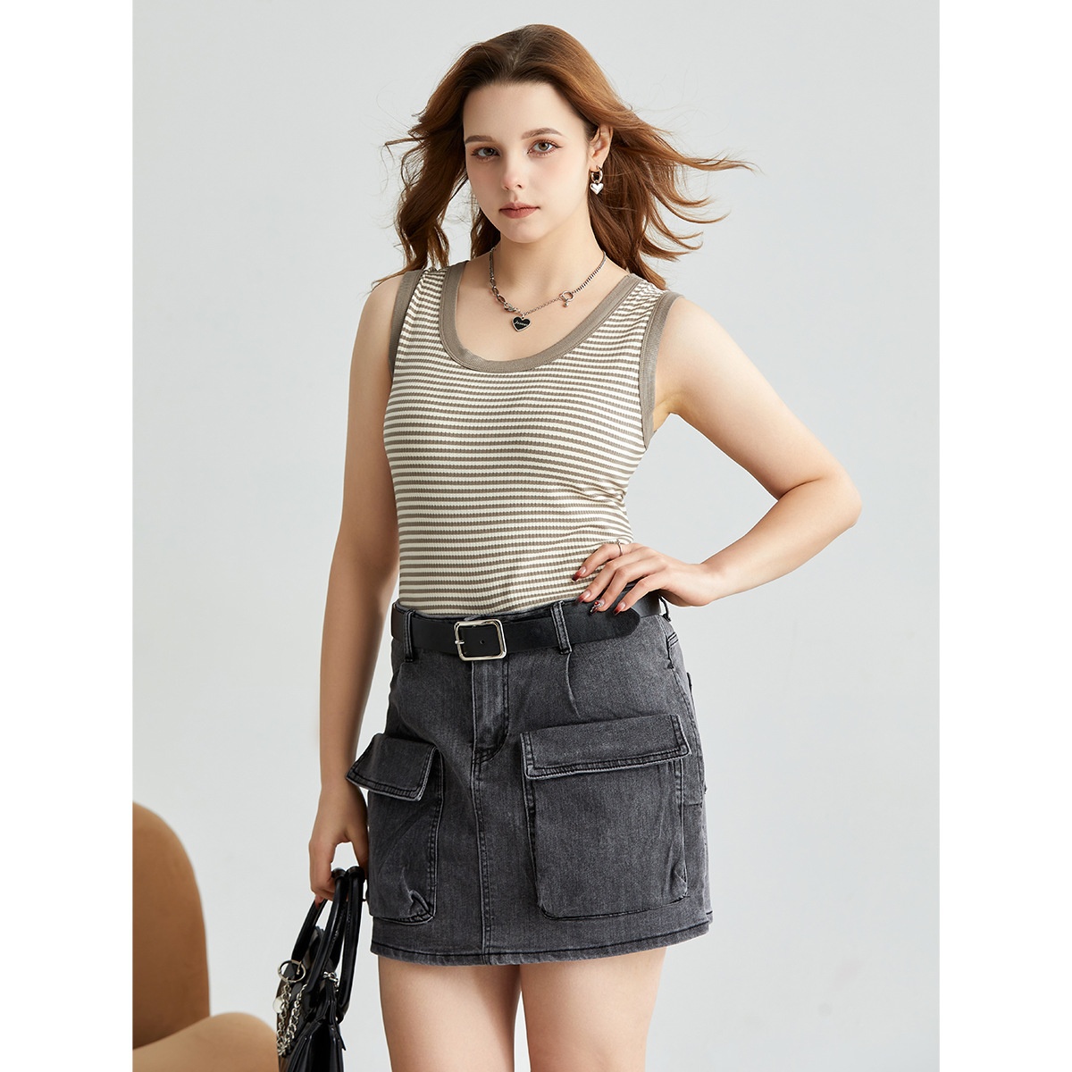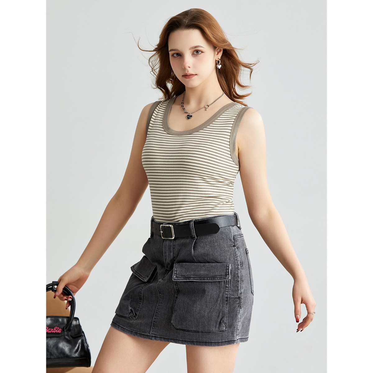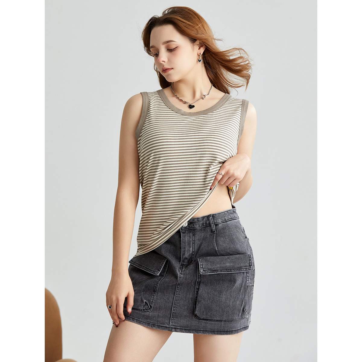 Spring And Summer U-neck Striped Wide Shoulder Vest For Women To Wearide And Outside,Seamless,Breathable,Anti-exposure,Casual Bottoming
