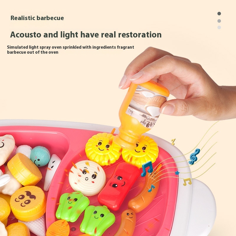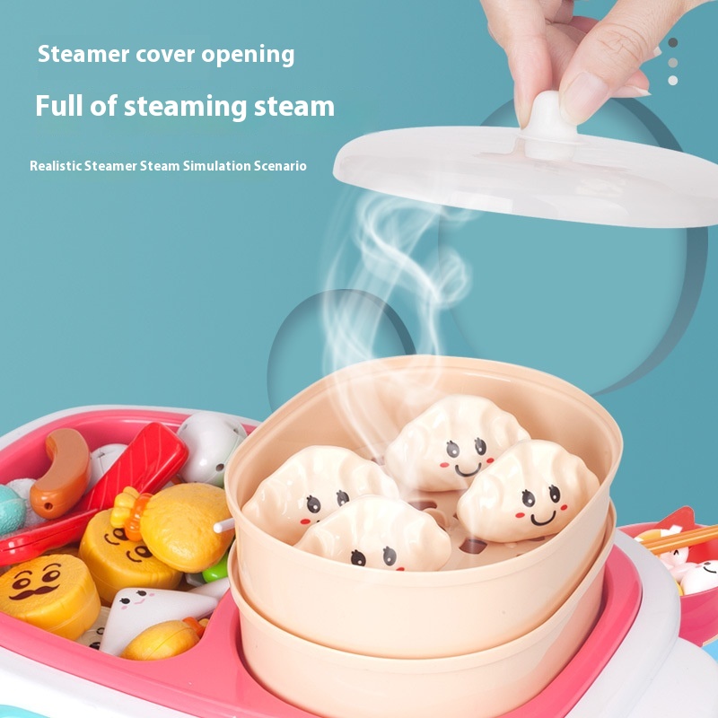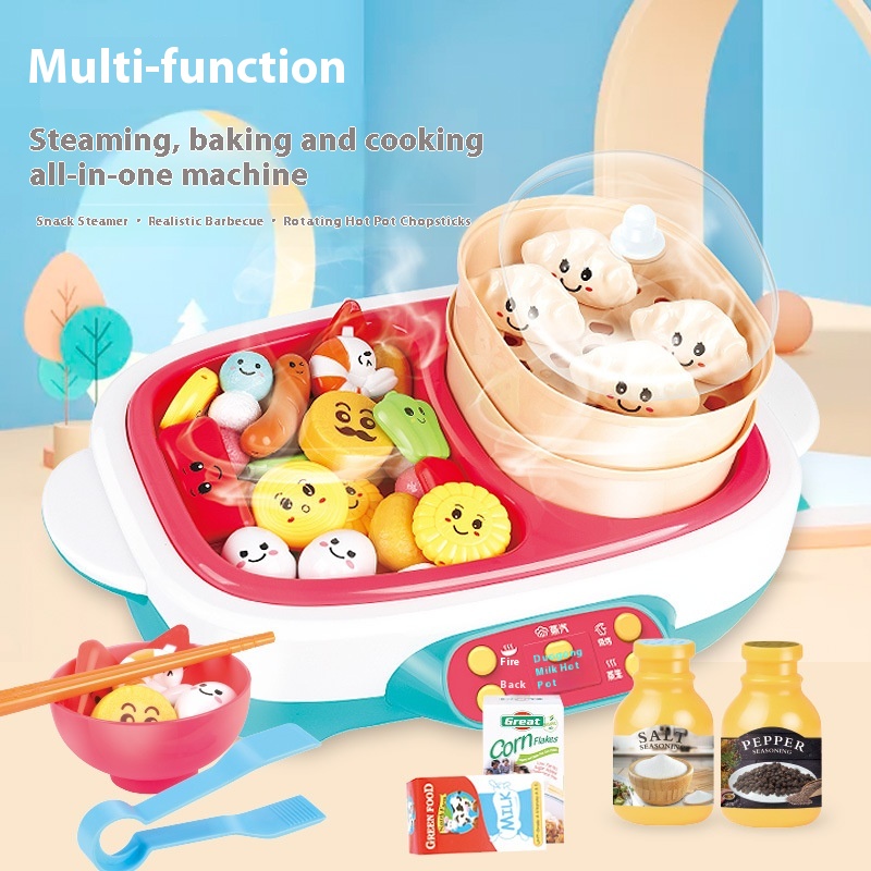 Children's Play House Kitchen Set Boys And Girls Electric Rotating Steam Hot Pot Big Le Bucket Barbecue Stove Cooking Toys