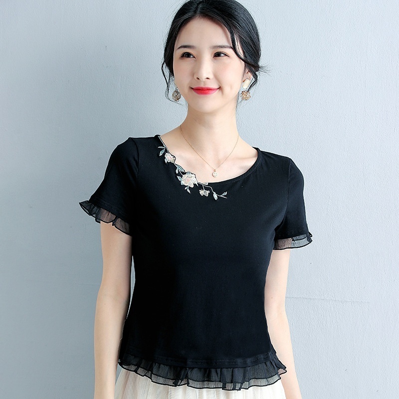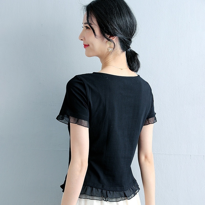Summer Short Tops High Waist Fashion Shirt Women's Short Sleeve T-shirt Cotton Slim Half Sleeve Tops