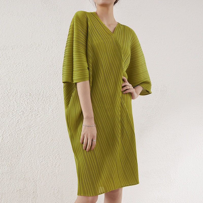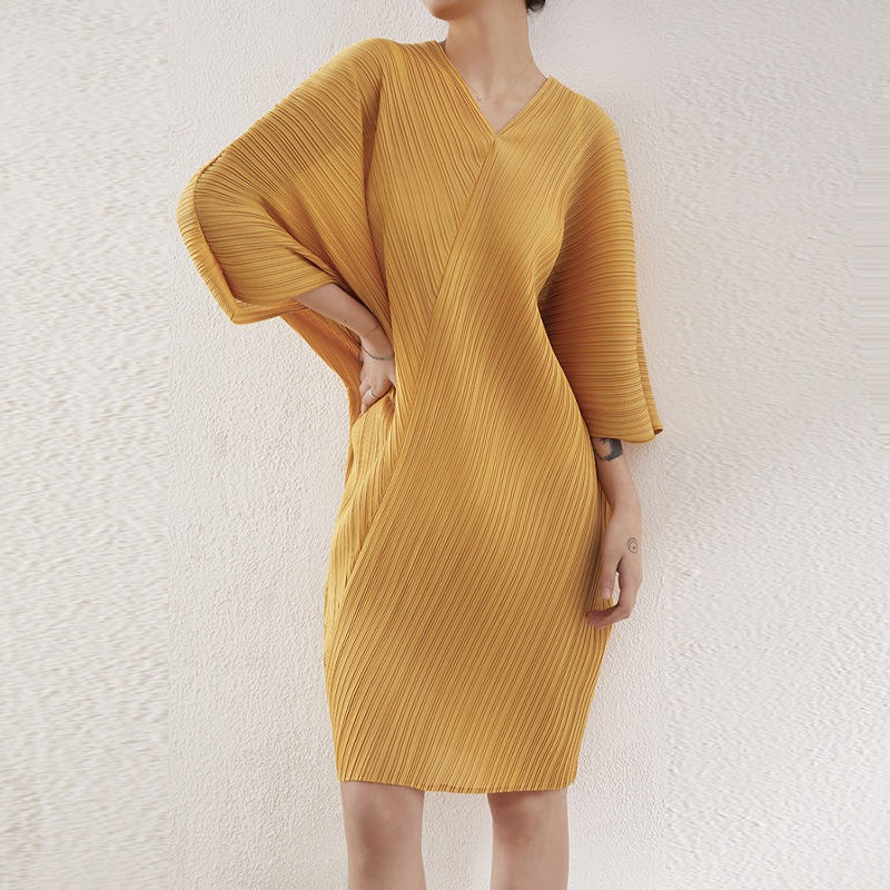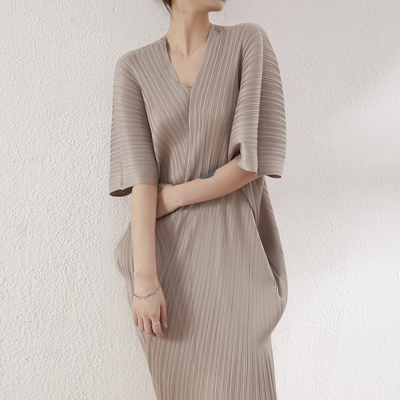 Pleated Bat Sleeve Dress For Women Miyake Autumn Best-selling Model Slim Fit Versatile Bottoming Skirt Midi Skirt