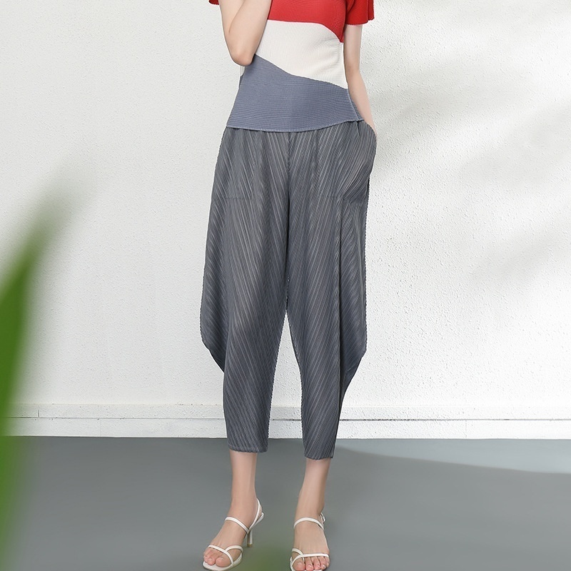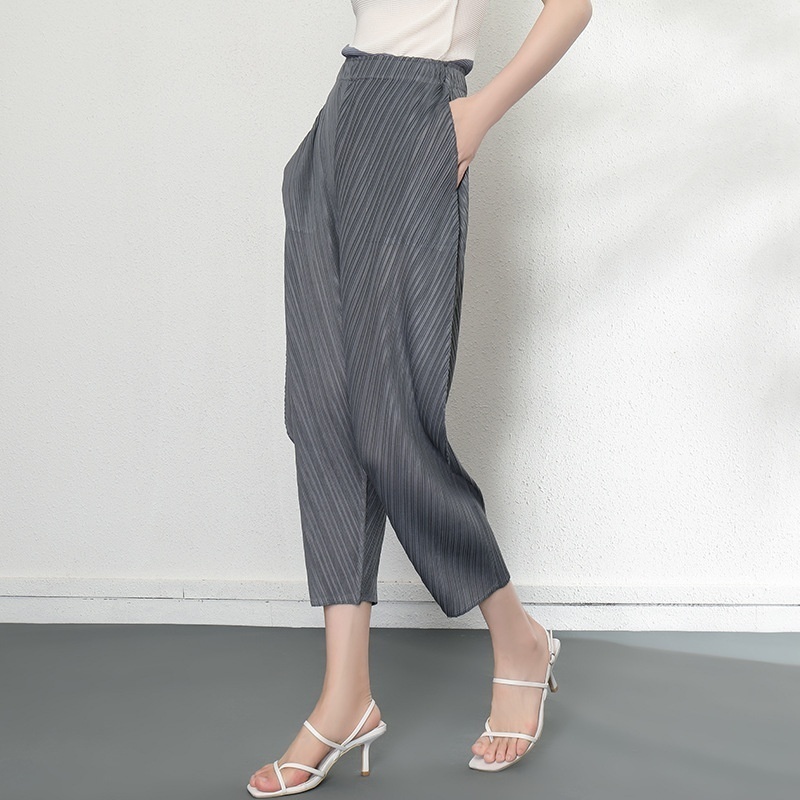 Miyake Pants Spring And Summer Women's Slim-fitting Pleated Harem Pants Loose Wide-leg High Waist Slim Nine-point Casual Pants
