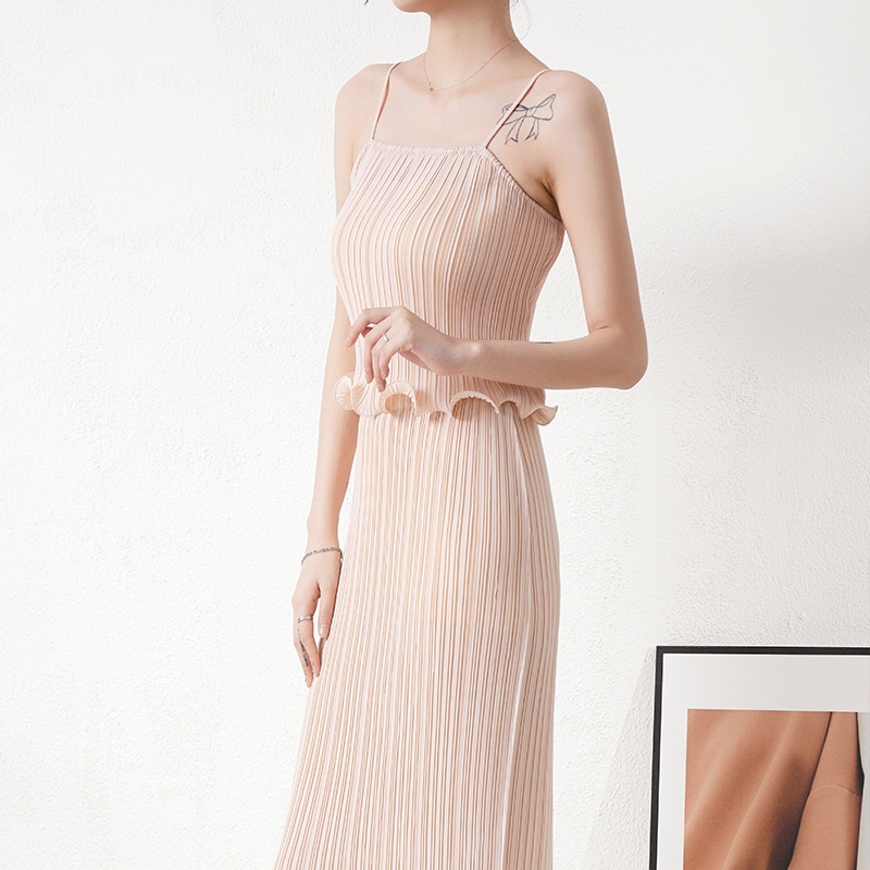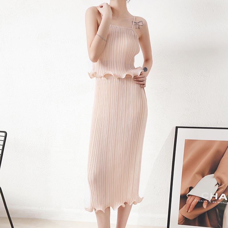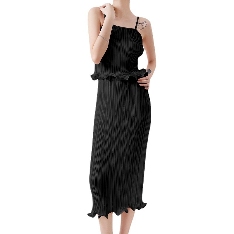 Slimming Hip-wrapped Ruffled Skirt Suit Summer Style High-grade Pleated Splicing Camisole Vest Women's Two-piece Suit