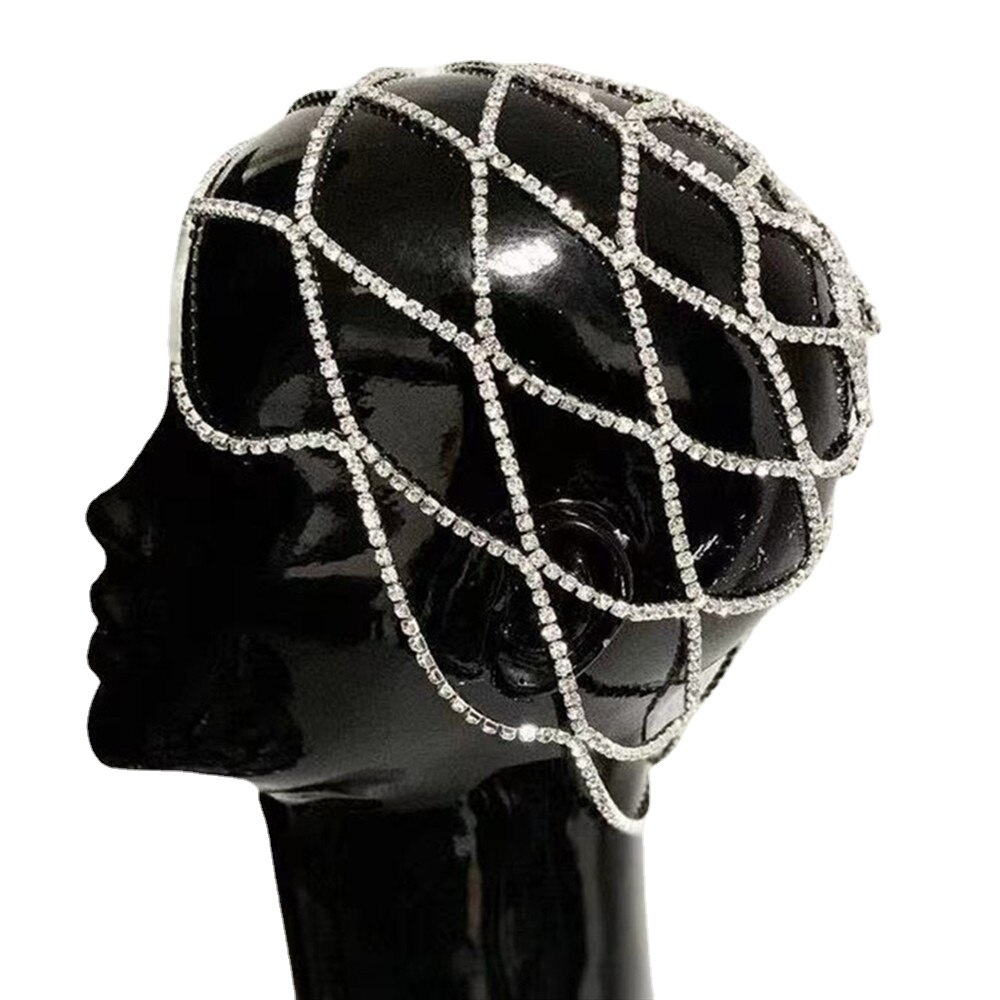 Hot-selling Accessories Mesh Rhinestone Hair Chain Exaggerated Temperament Multi-layer Full Diamond Hair Accessories European And American Hair Chain