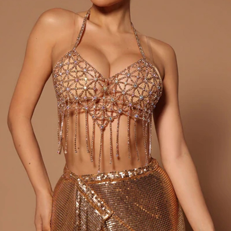 Fashion Mesh Tassel Rhinestone Chest Chain Nightclub Sexy Diamond Body Chain Female Body Chain06