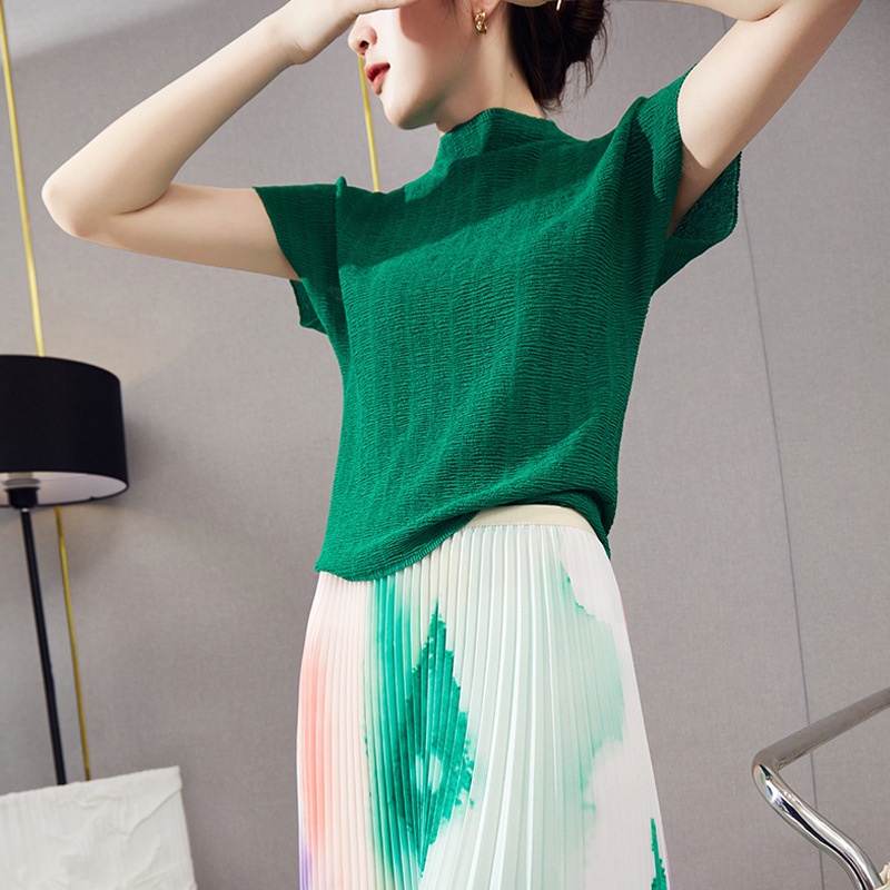 Xiaohongshu Clothes Women's Design Tops Women's Temperament High Collar Loose Versatile Short-sleeved T-shirt Women