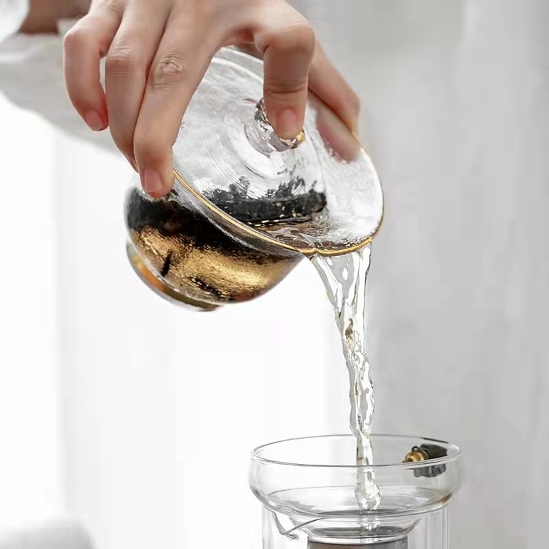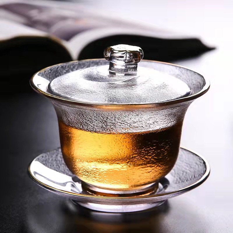 Thickened Glass Large Tea Bowl Not Hot Kung Fu Tea Set Cup Handmade High-end Sancai Covered Bowl Gift