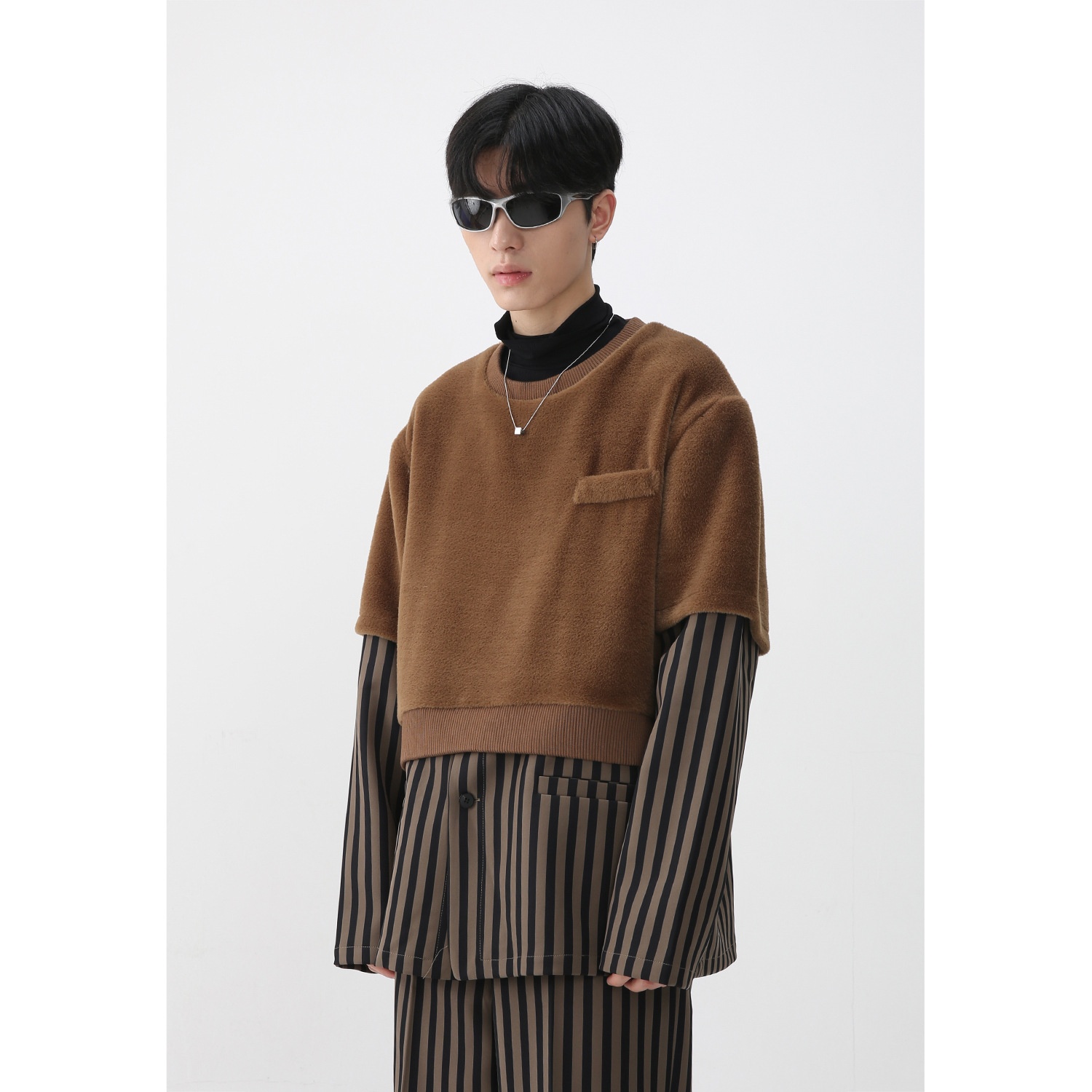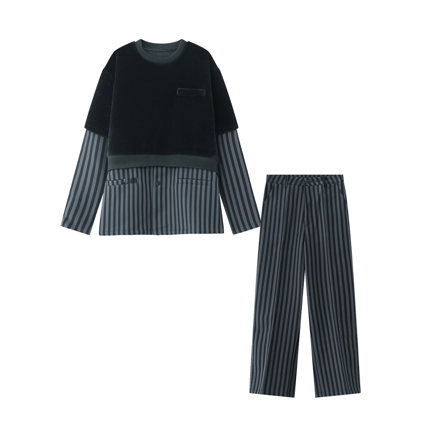 MTLCLOTHESMen's Clothing|Autumn And Winter Men's Long Sleeve Shirt Fake Two-piece Casual Trousers