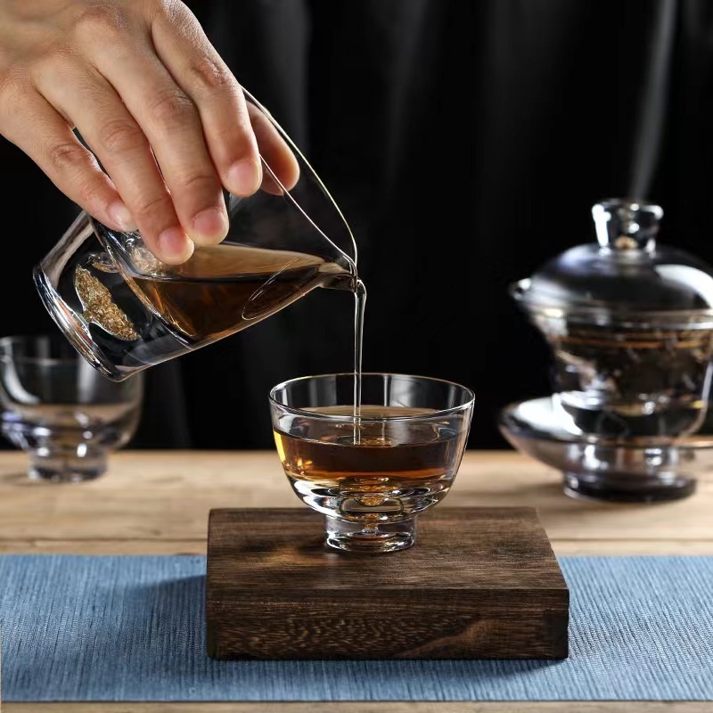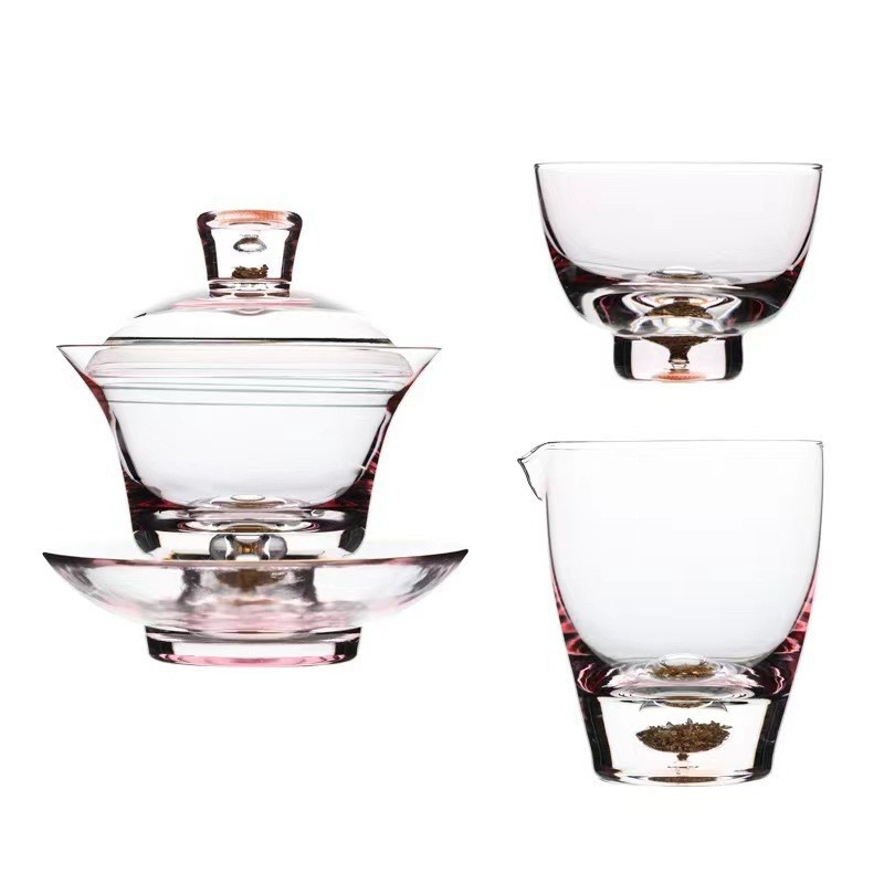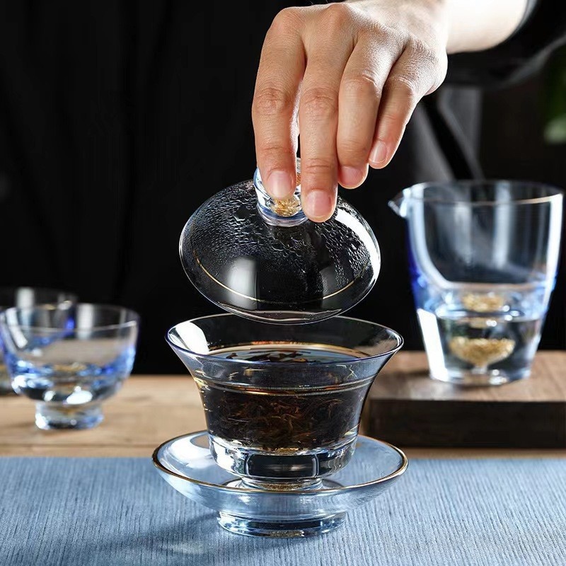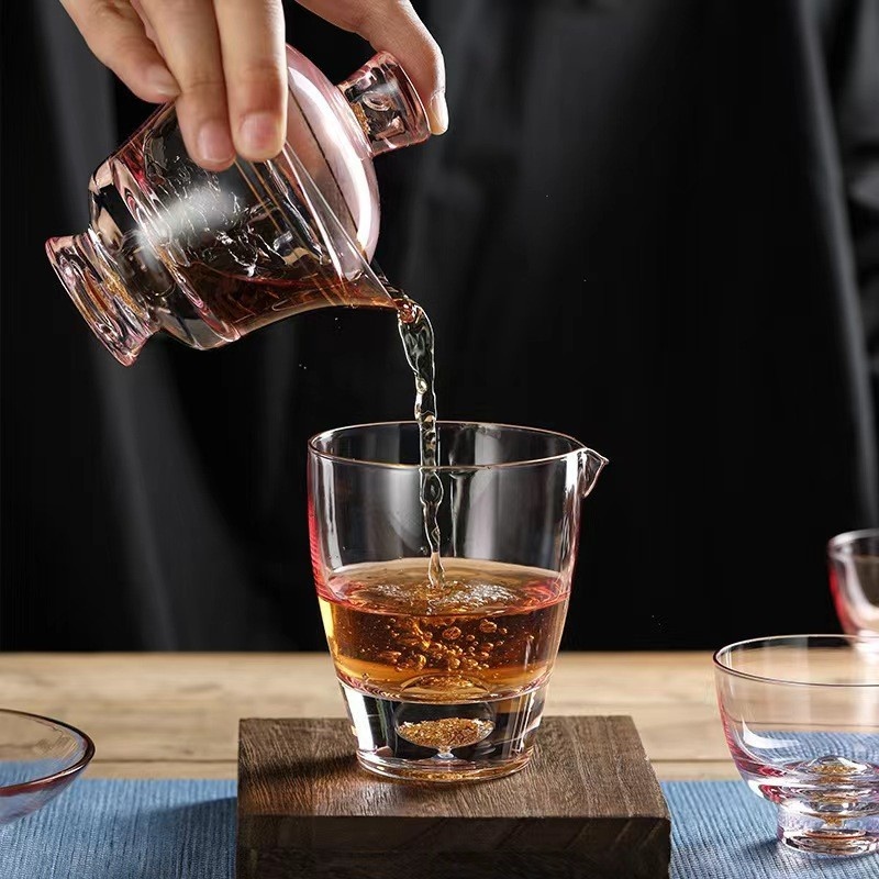 Chinese Handmade Light Luxury Covered Bowl Gold Foil Fair Cup Glass Tea Cup Kung Fu Tea Set Gift Host Cup