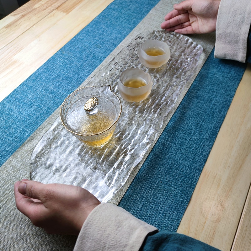 Thickened Glass Kung Fu Tea Tray Simple Tree Pattern Pot Holder Japanese Style Dry Tea Tray Table Integrated