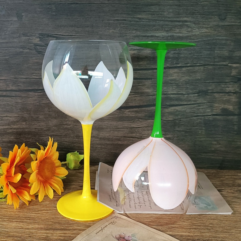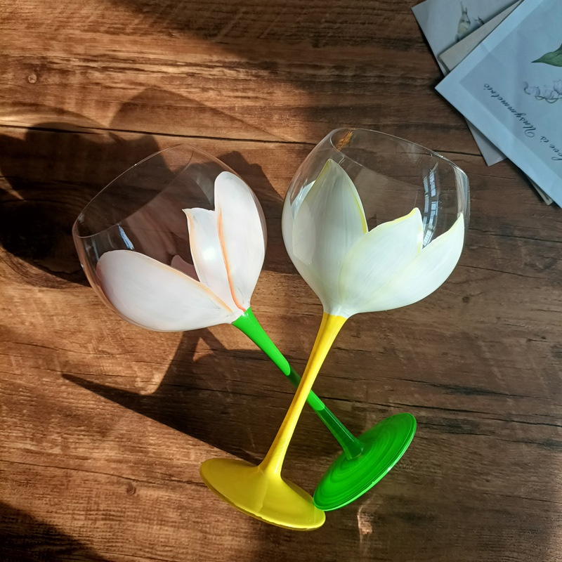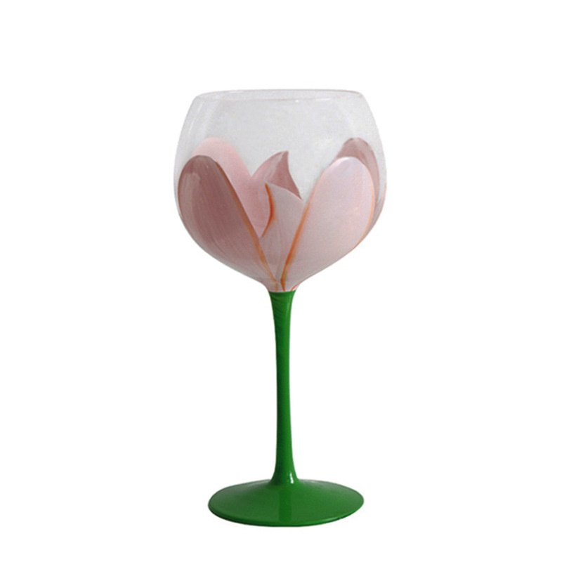 Antique Crystal Glass Red Wine Glass Goblet Hand-painted Tulip Wine Glass Girl Birthday Gift