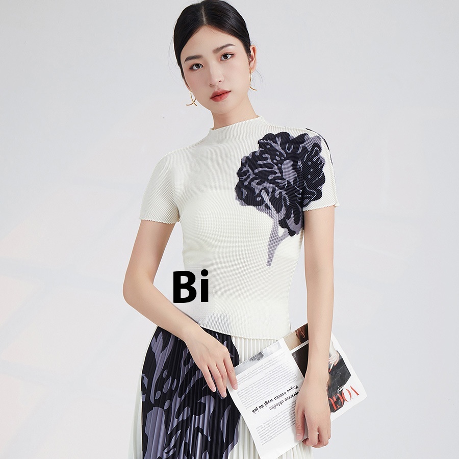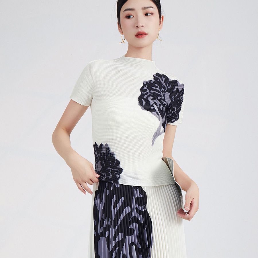 Miyake Short-sleeved T-shirt For Women Pure Desire Style Slim Fit Women's Tops Summer Fashion Pleated Bottoming Shirt