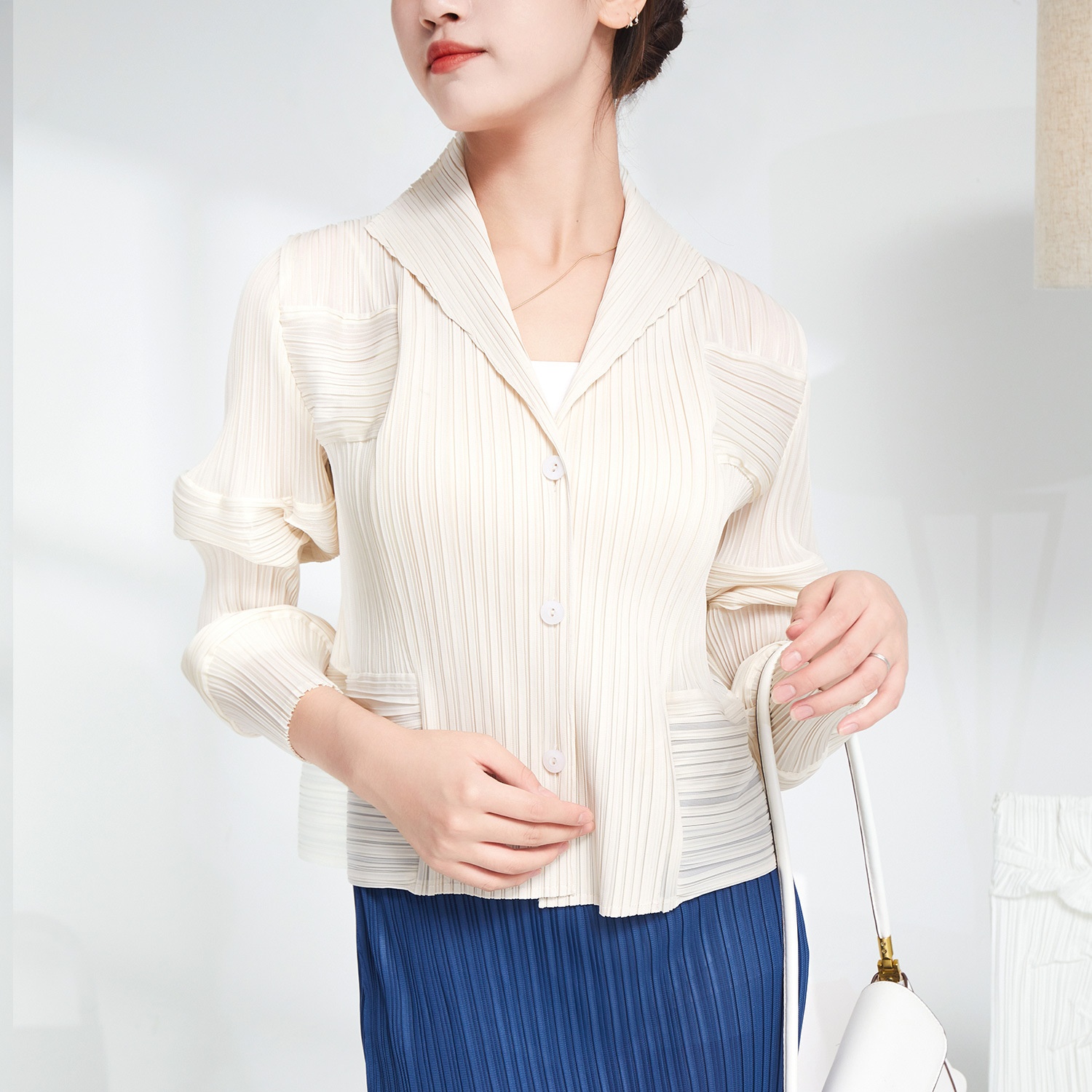 Fashionable High-end Pleated Short Jacket For Women,Style For Spring And Summer,Flower Bud Design,Niche Cardigan Shawl Top