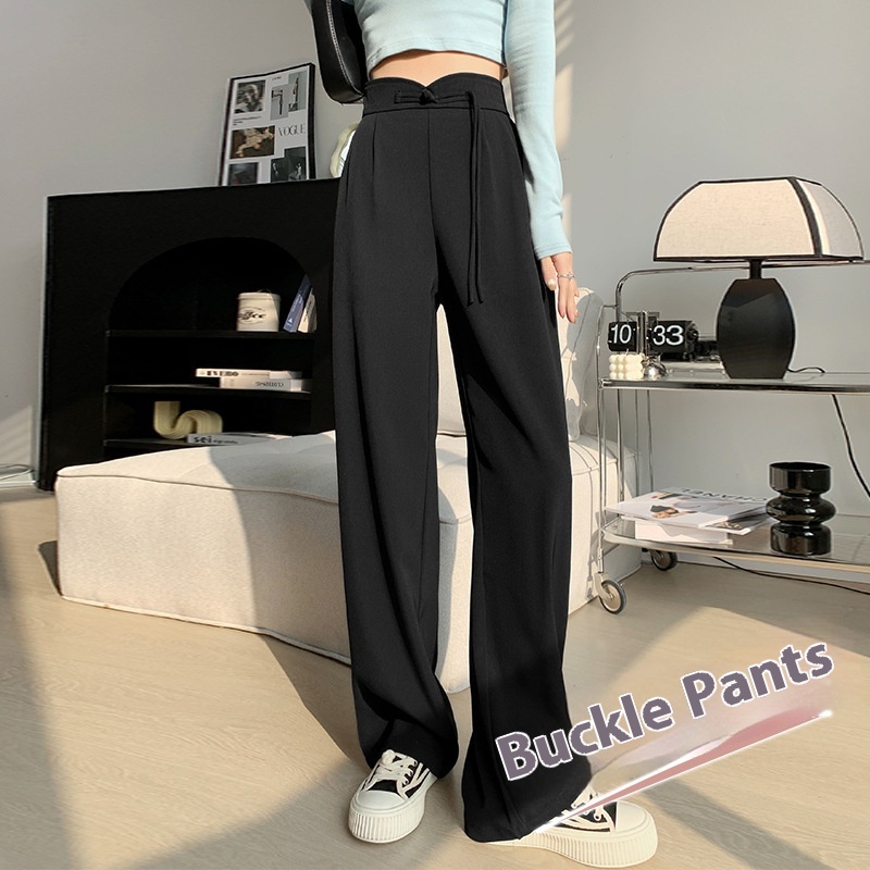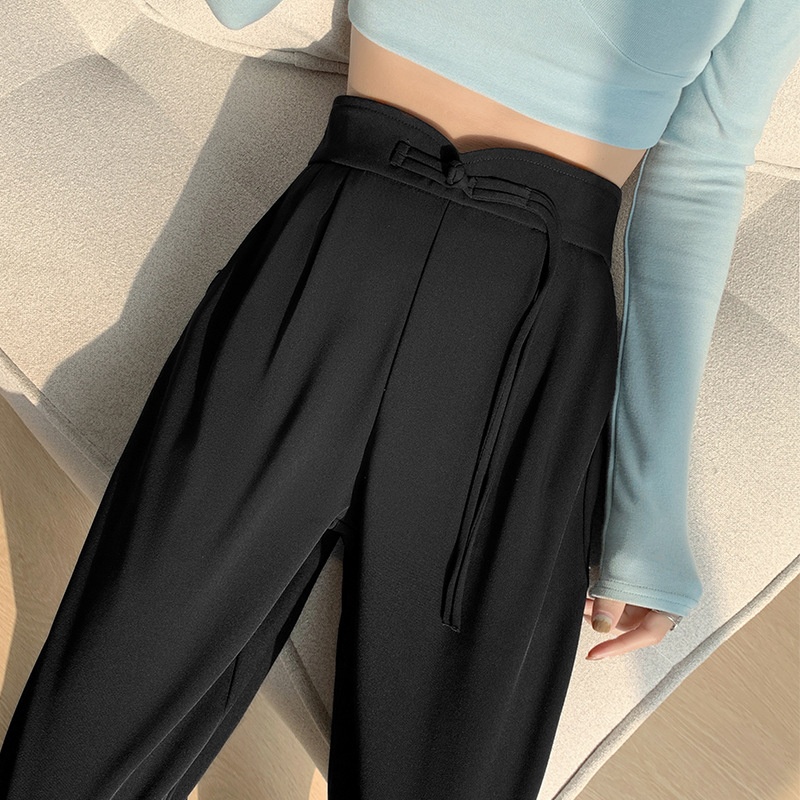 Chinese Style Buttoned Suit Pants For Women Spring Design High Waist Narrow Version Wide Leg Pants Chinese Style Casual Mopping Pants