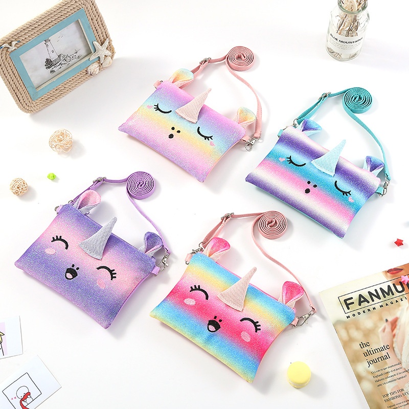 Unicorn Shoulder Bag Children's Cartoon Cute Plush Crossbody Bag Kindergarten Girls Plush Coin Purse Mermaid