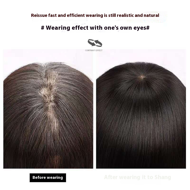 Wig Small Piece Type Real Hair Cover The White Hair On The Top Of The Head Fluffy One Piece Type Top Wig Female Short Hair Hand Dery