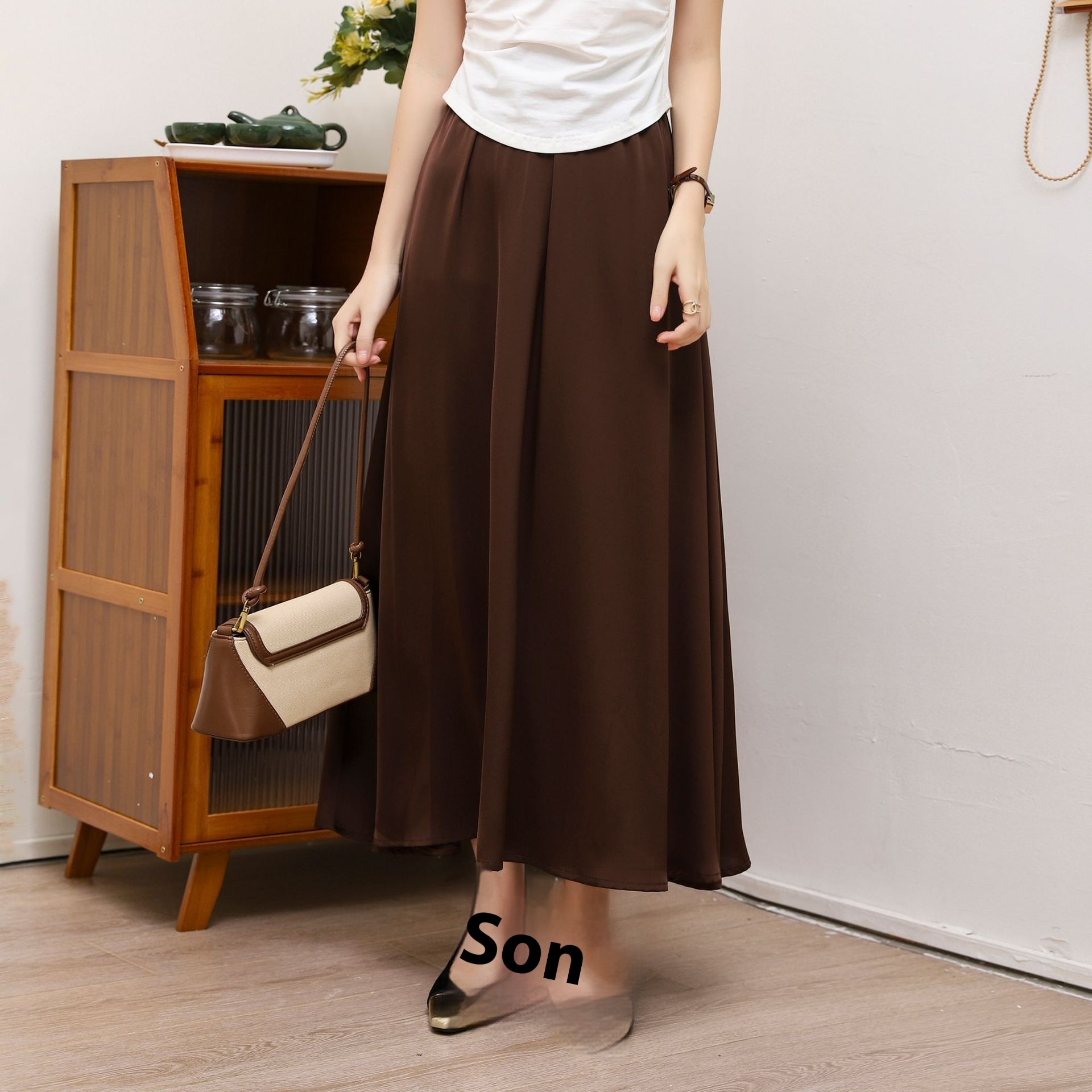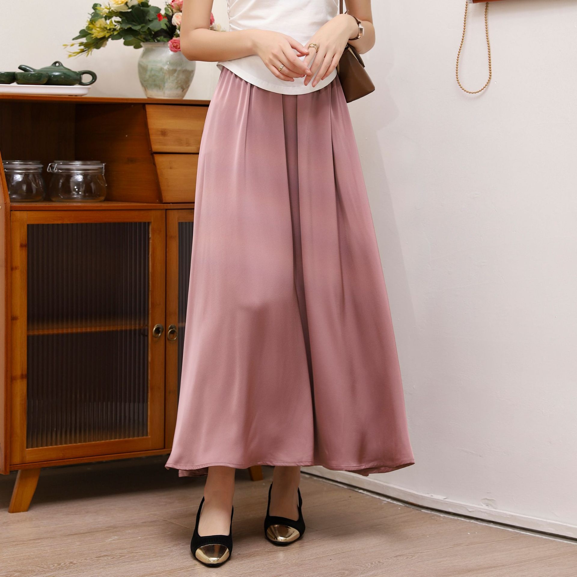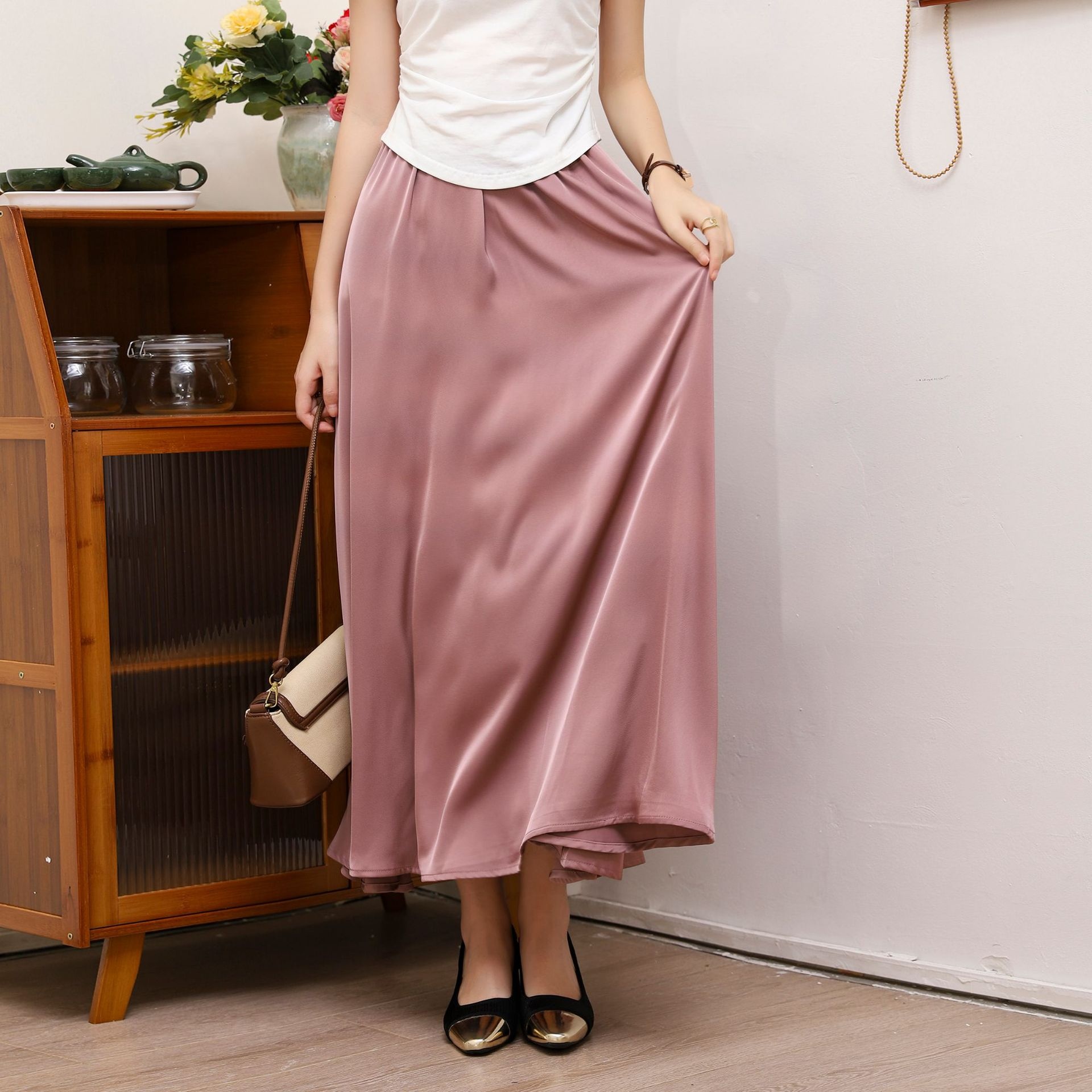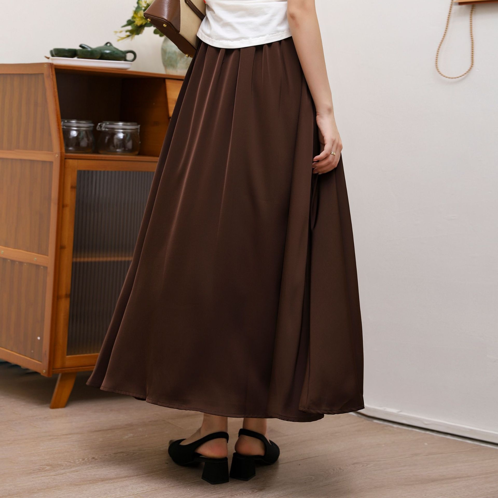 French Acetate Satin Skirt With AFull Sense Of Drape,High Waist And Wide Swing Skirt,Elegant Commuting,Concealing Flesh And Slimming Midi Skirt