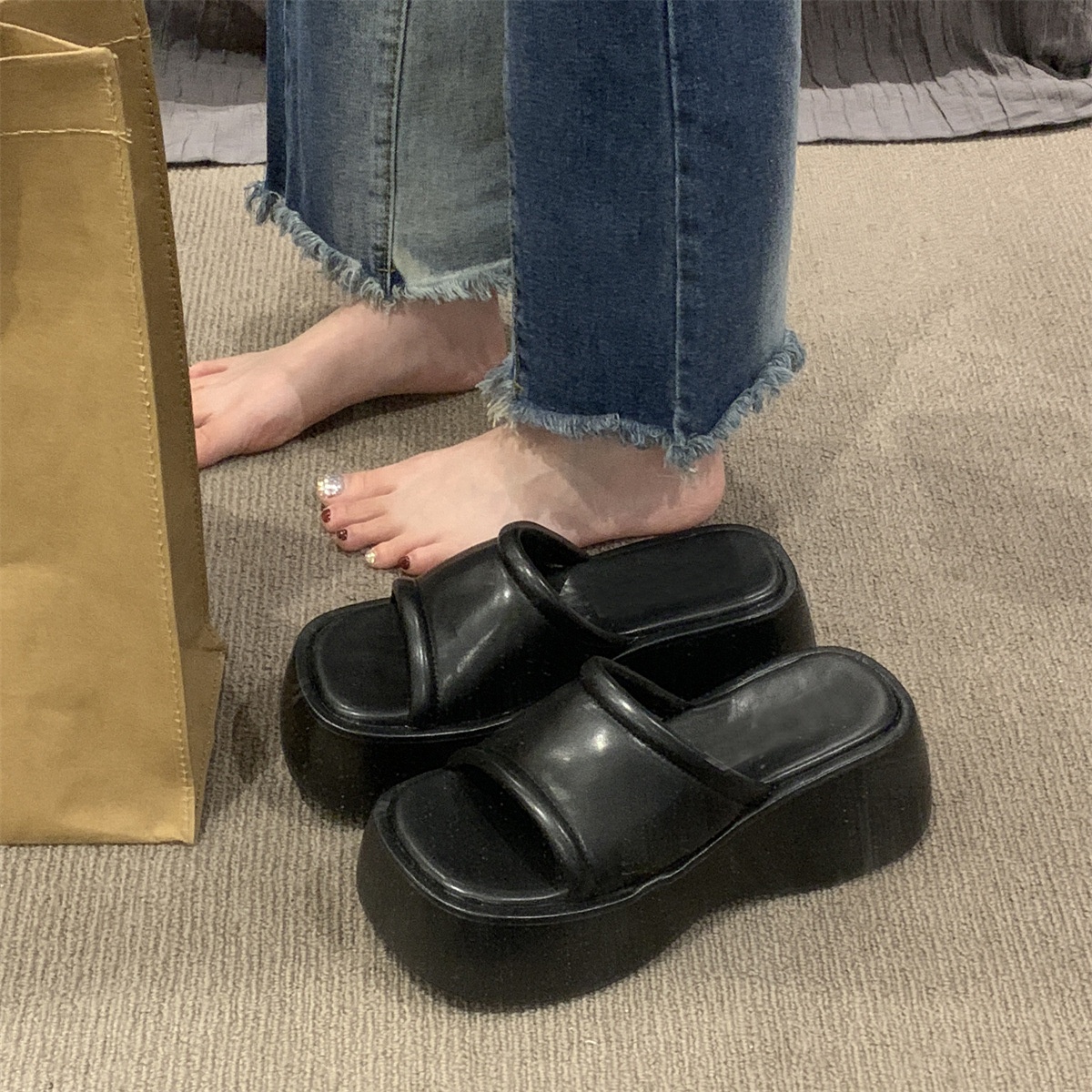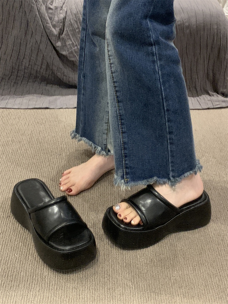 Summer Thick-soled Sandals For Women To Wear As Outdoor Wear,Elegant High-heeled Flip Flops,Niche Platform Wedge-heeled Half-slippers