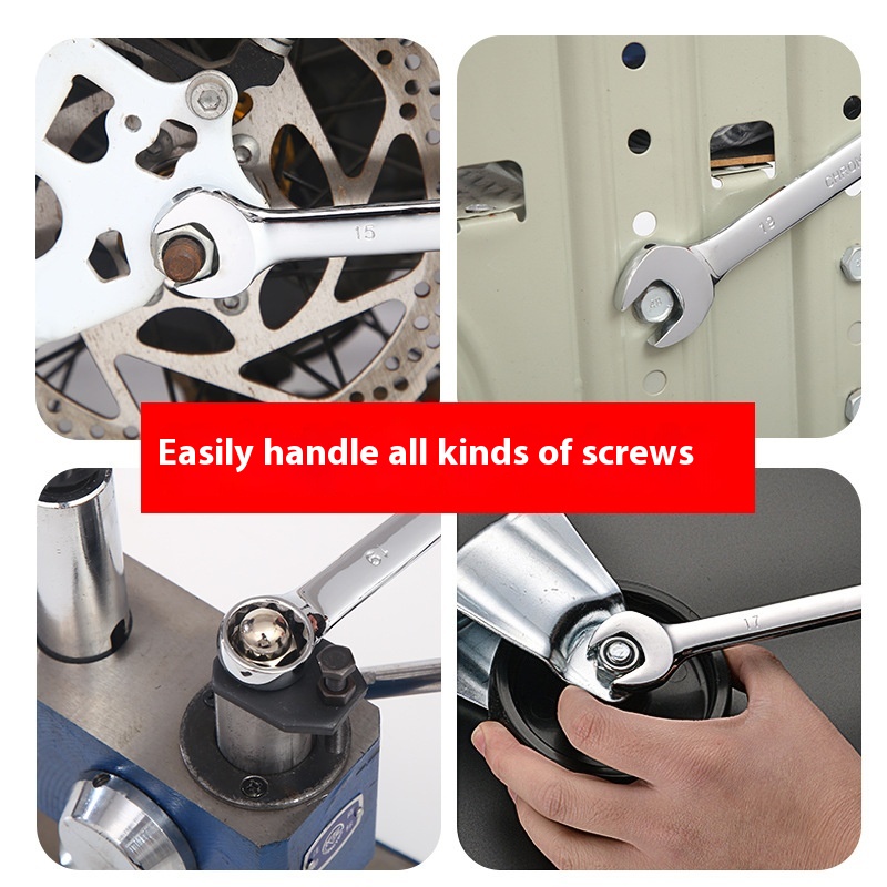 Hardware Tools Mirror Dual-purpose Plum Blossom Manual Chrome-plated Dumb Wrench Complete Set Double-head Plum Open-ended Wrench