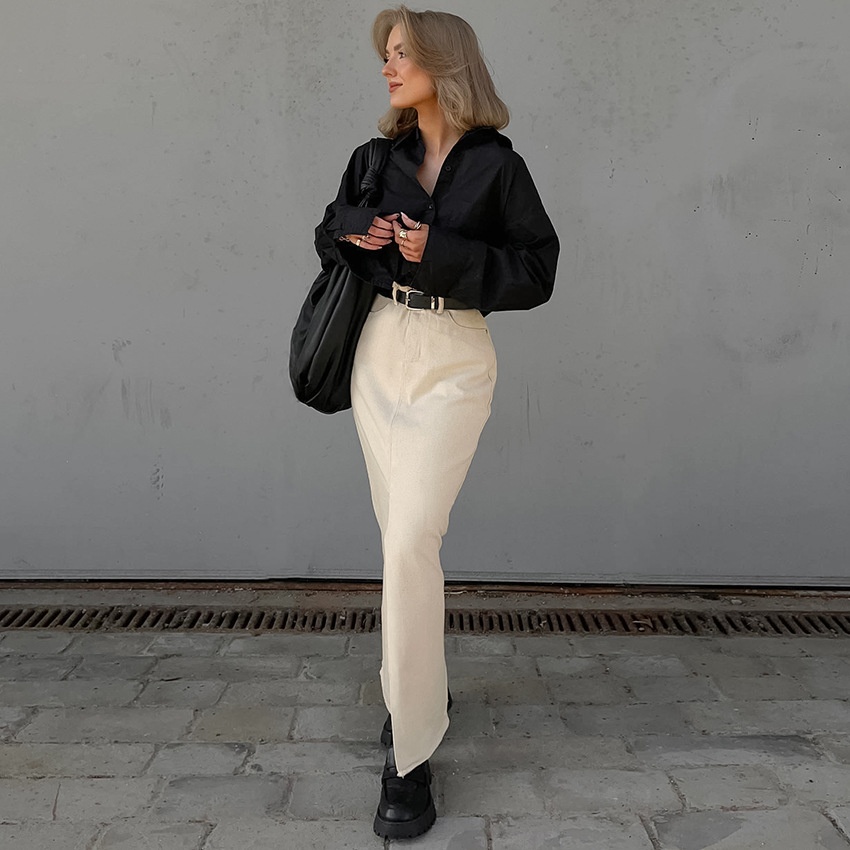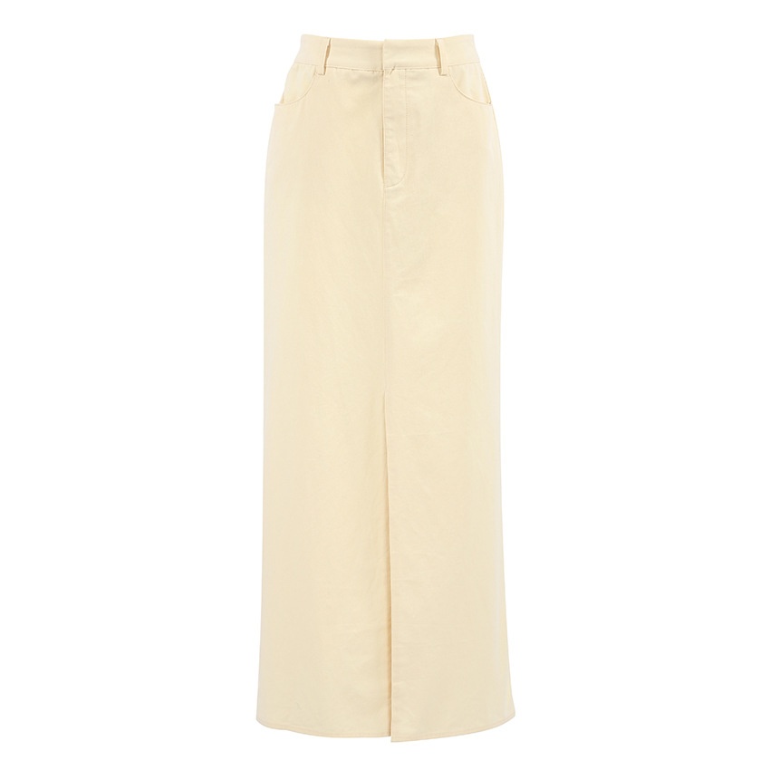 European And American Spring And Summer Foreign Trade Temperament Fashion All-match Commuting Pure Cotton Slit High Waist Skirt Long Skirt Women