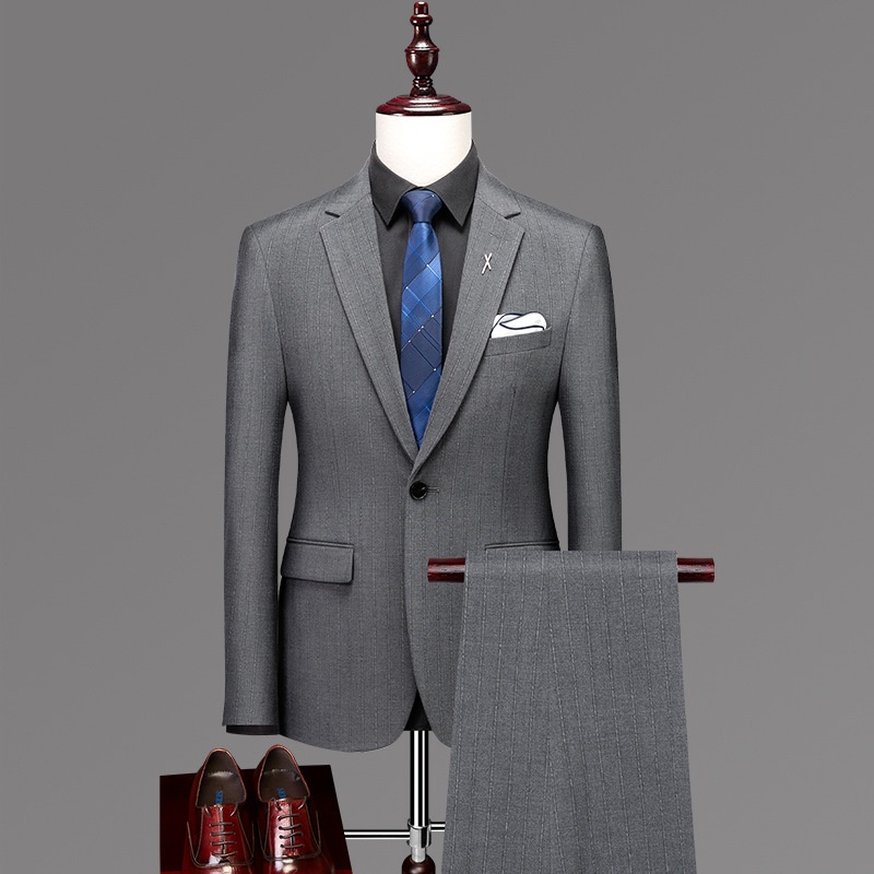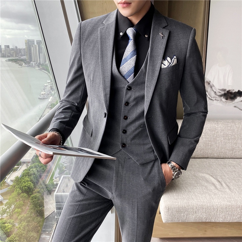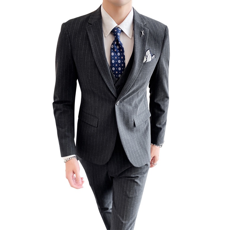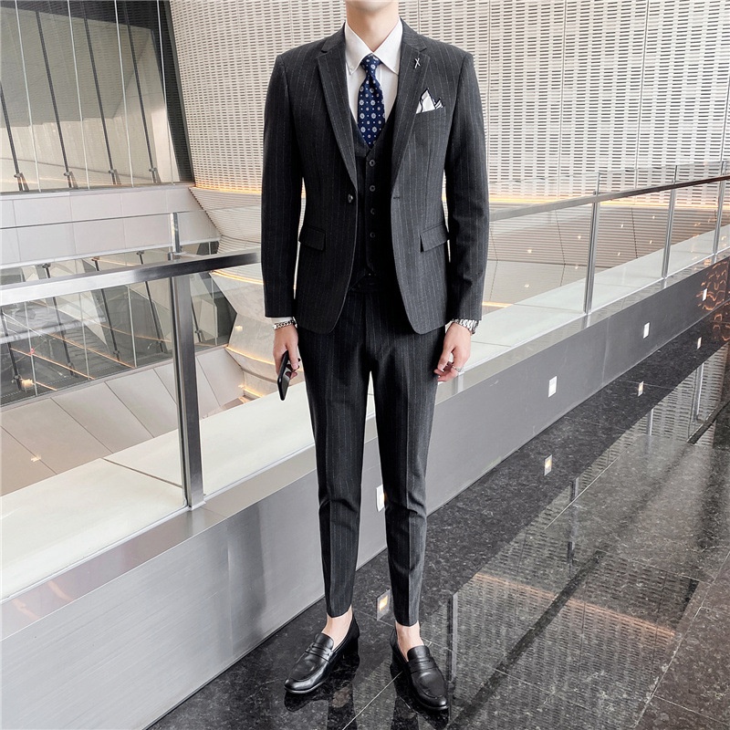 Men's Suit Three-piece Suit Korean Style Slim Business Formal Suit Casual Striped Small Suit Groom Wedding Dress