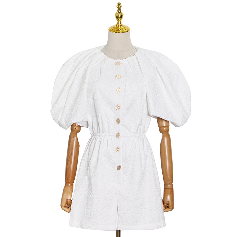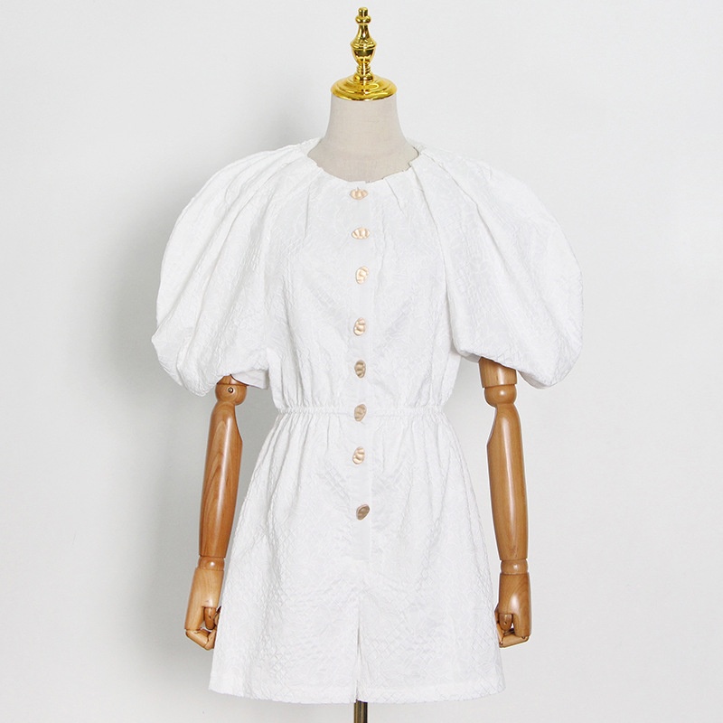 European And American Summer White Single-breasted Puff Sleeve Waist Slimming Fashion Short Temperament Jumpsuit For Women