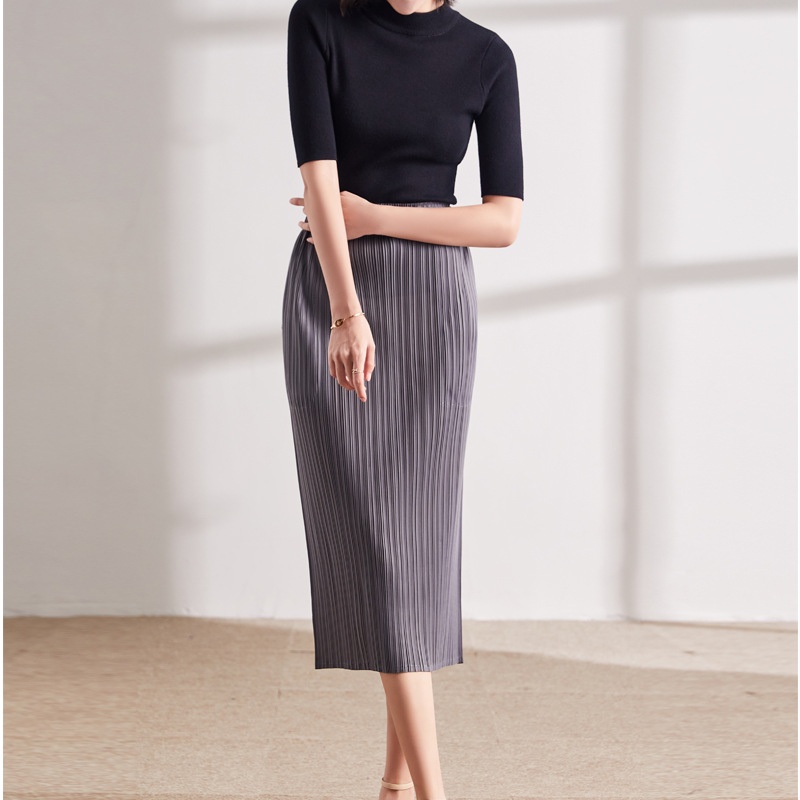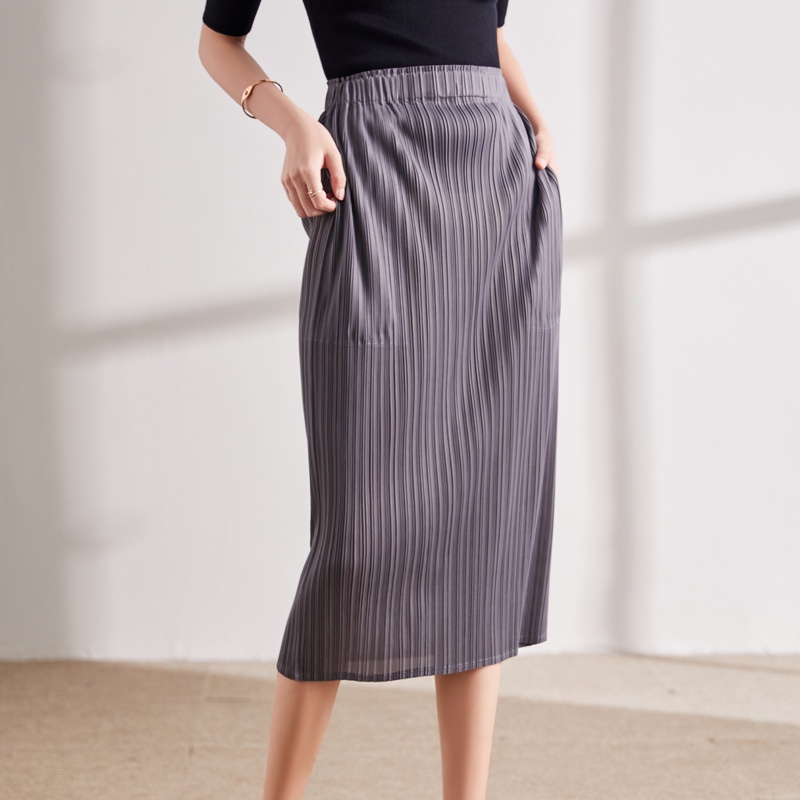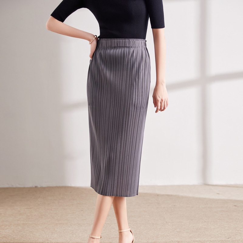 Slit Skirt Summer Women's Korean Style Fashion Casual Versatile Hip-wrapped Miyake Pleated Midi Skirt