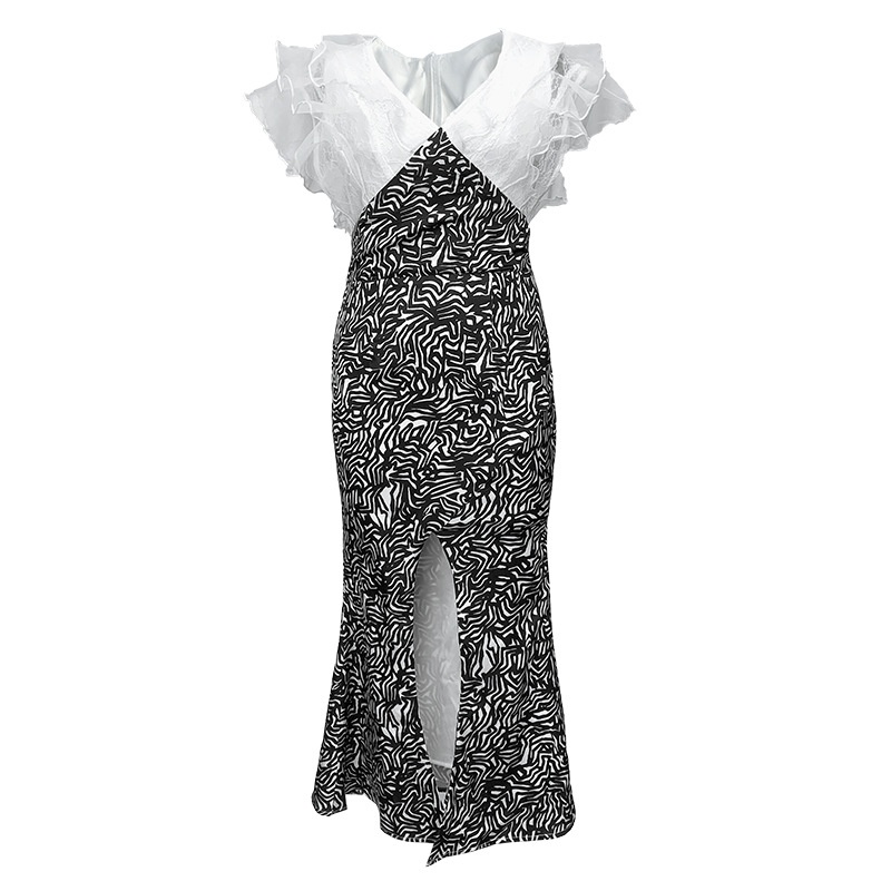 One-piece Summer European Station Ruffled Organza Splicing Pattern Dress4773