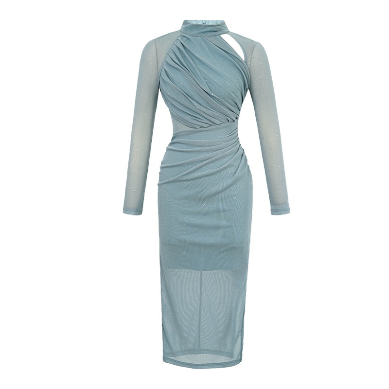 Spring French Sexy Hollow Pleated Tight Hip Mesh Dress Bottom Skirt Female30637