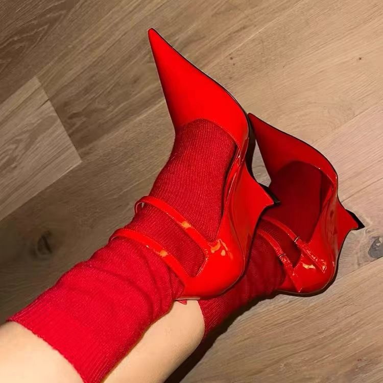 Sandals Early Spring Catwalk European And American High-end Red Sexy Niche Wedge Heel Pointed High Heel Single Shoes