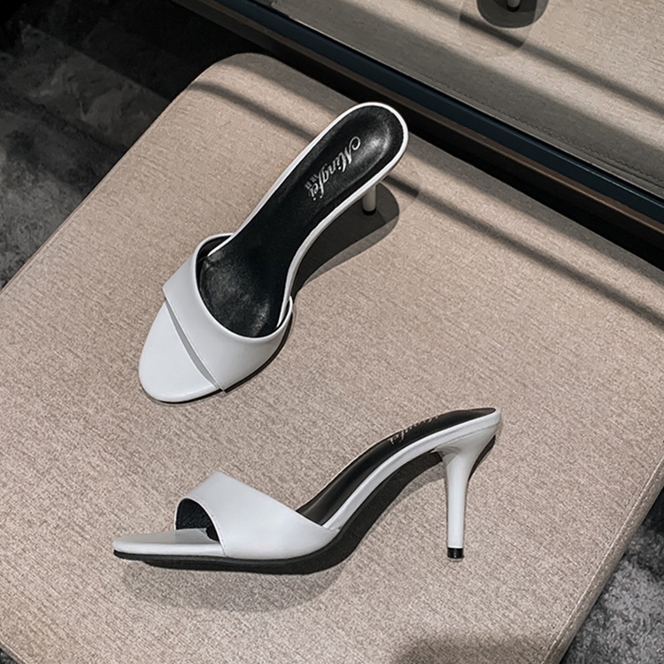 High-heeled Genuine Leather Slippers For Women,Stilettos For Outdoor Wear,Summer Style Fashionable One-line Sandals,One Piece Drop Shipping