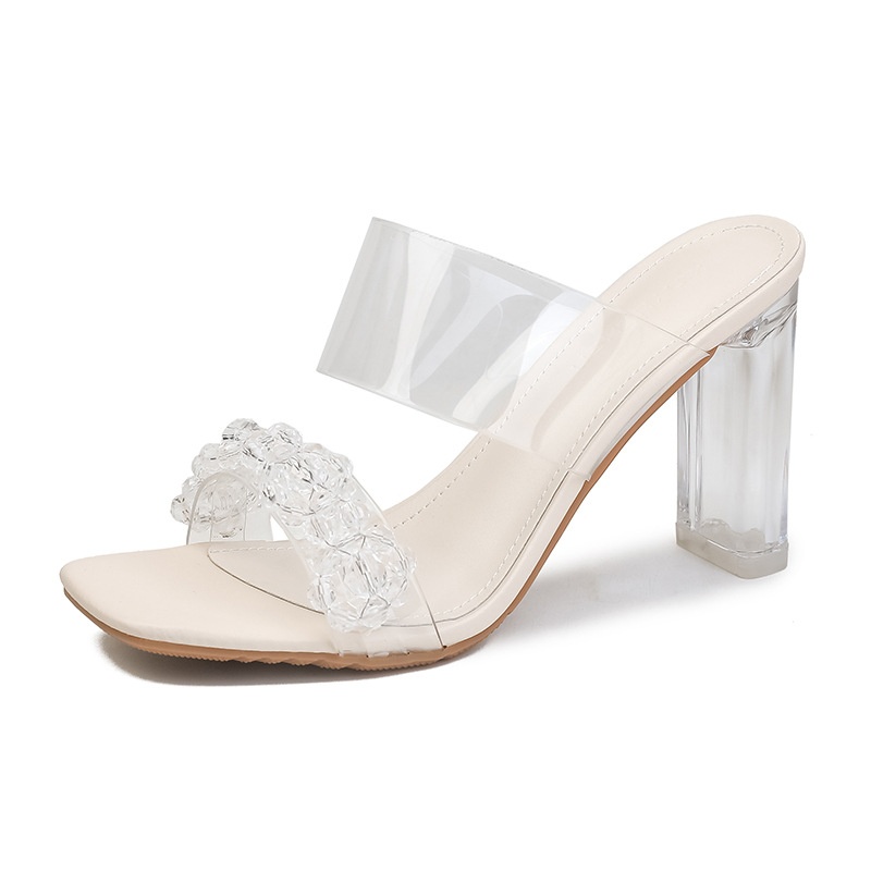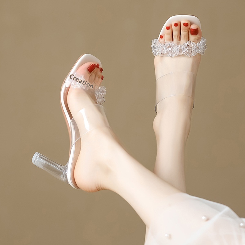 Transparent Sandals For Women Spring Sexy One-line Thick-heeled Sandals Crystal Heels High-heeled Slippers For Women To Wear Outside