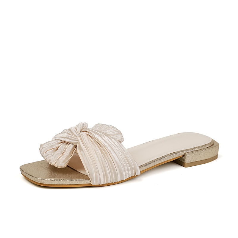 Women's Sandals For Summer Outdoor Wear Fairy Style Soft Bottom Low Heel Bow Half-slip Beach Sandals For Women