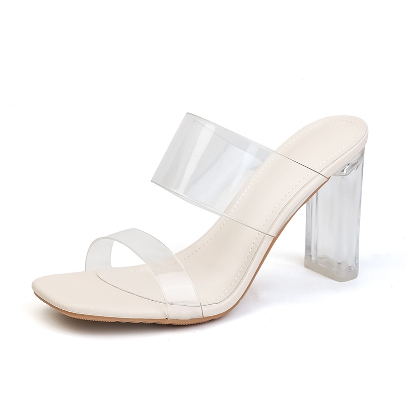 Genuine Leather Transparent Sandals Women's High Heels Summer Mid-heel Fashion Crystal Thick Heel Outdoor Sandals