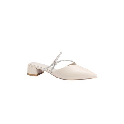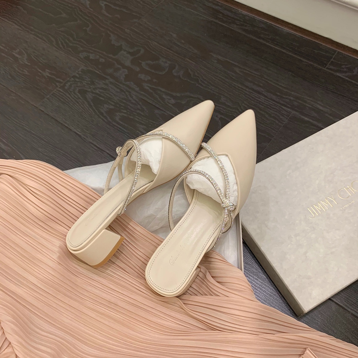 Grape Mom French Elegant Pointed Sandals Diamond Thick Heel Medium High Heel Half Slippers Women Summer