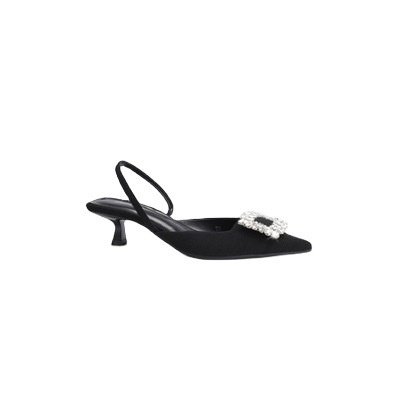Su Yinyin Summer Rhinestone Square Buckle Pointed Back High Heel Sandals Women's Mid-heel Commuter Wedding Shoes