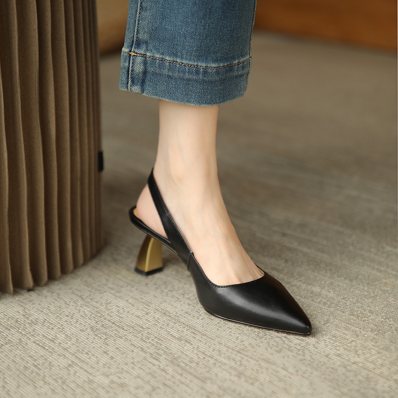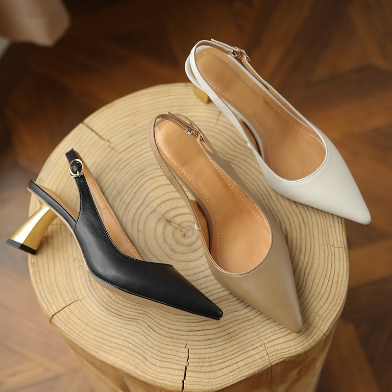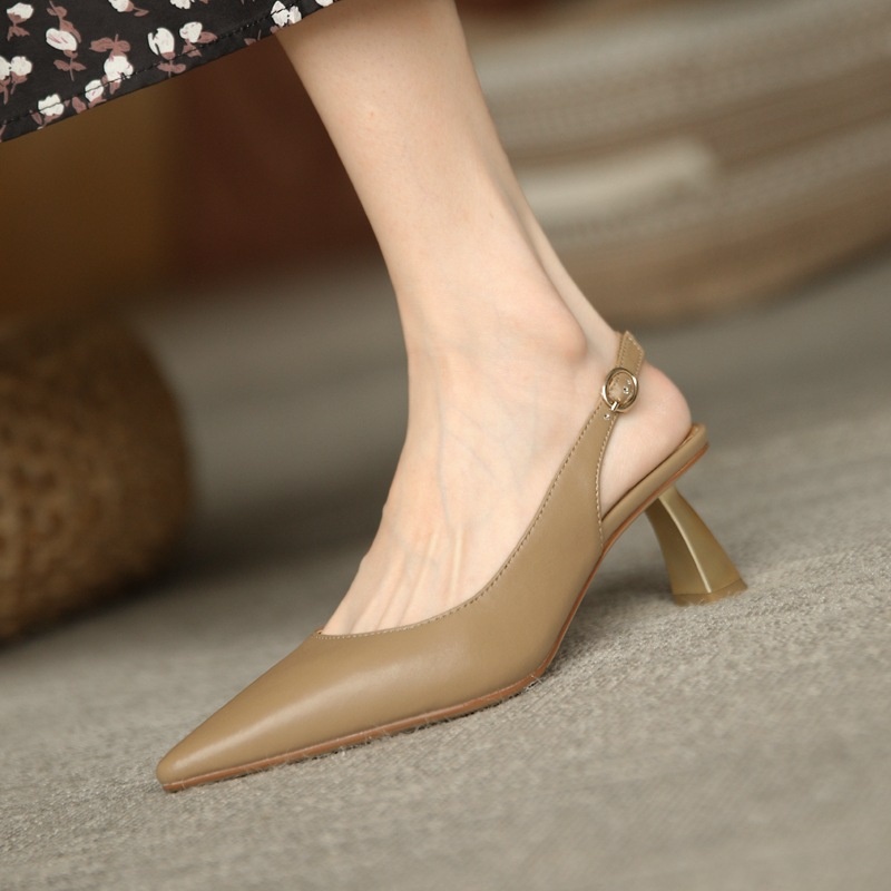 French Retro Baotou Sandals For Women Spring Mid-heel Stilettos One-line Buckle Simple Sandals For Outdoor Wear