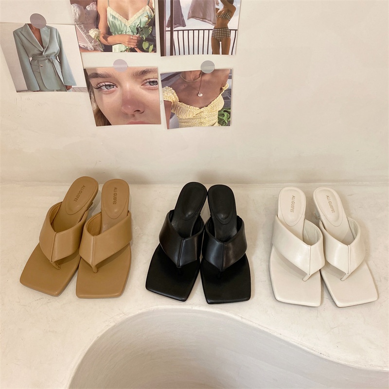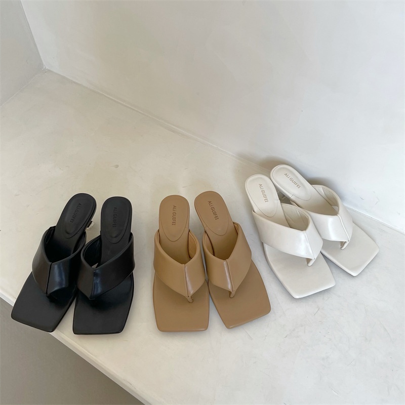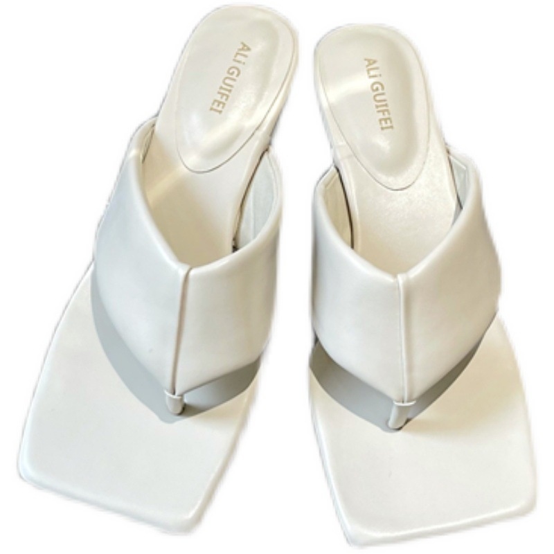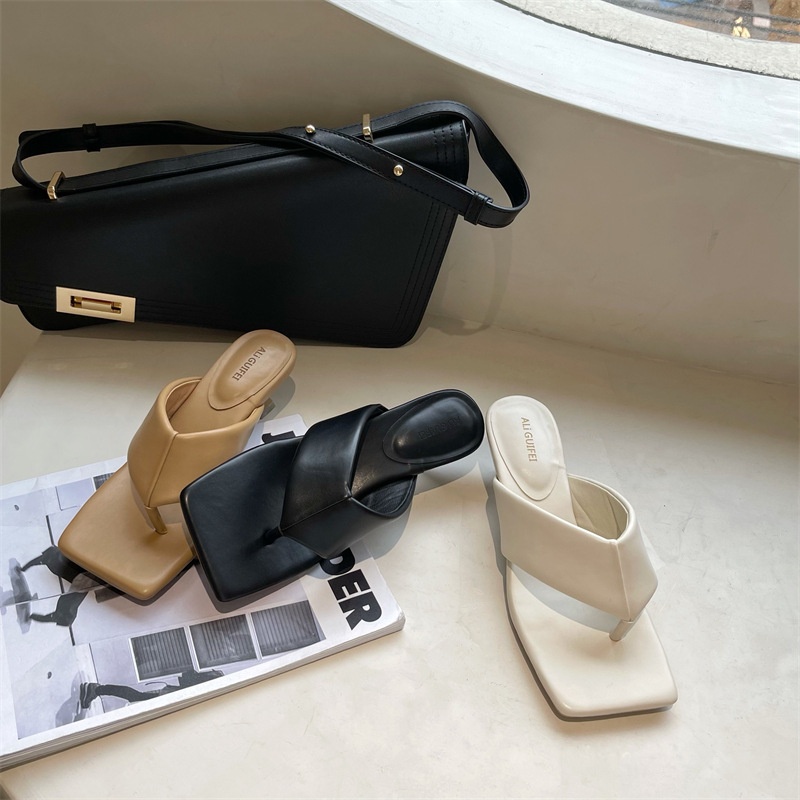 Women's High-heeled Flip-flops For Outdoor Wear In Summer,Fashionable And Versatile Square-toed Stiletto Beach Sandals