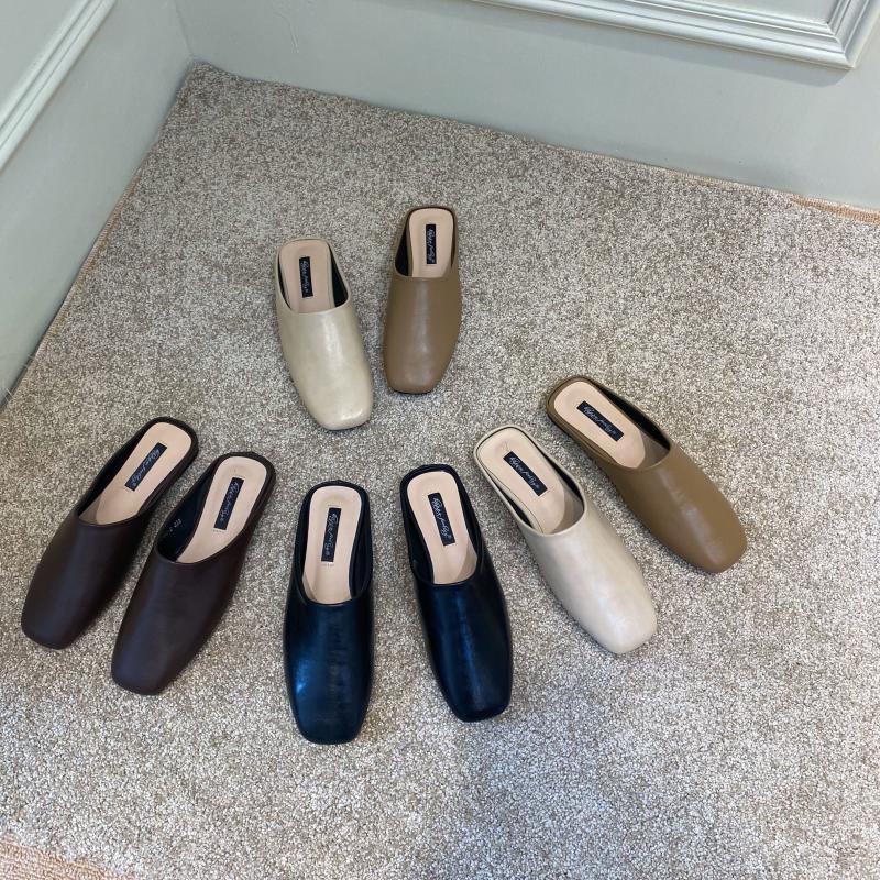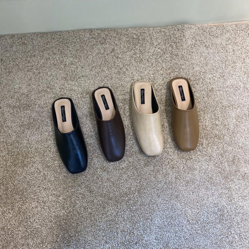 South Korea Spring And Summer Fashion Retro Mule Women's Shoes Closed Toe Low Heel Lazy Square Toe Flat Slippers