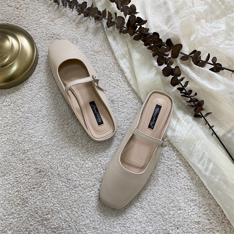 Flat Shoes Single Shoes Women's Shoes Spring And Summer All-match Flat Shoes Outdoor Wear Half-slip Brown Toe Shoes Mules