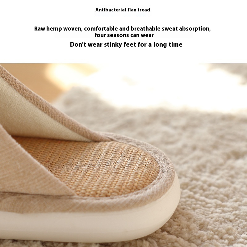 Japanese Style Spring And Autumn Linen Slippers For Women Indoor Home High-end Stepping Shit Cotton And Linen Slippers Men's Home Four Seasons