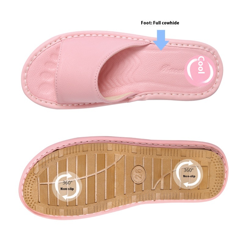 Summer Haining Genuine Leather Slippers For Women Home Household Indoor Non-slip Leather Soft Bottom Leather Sandals For Men