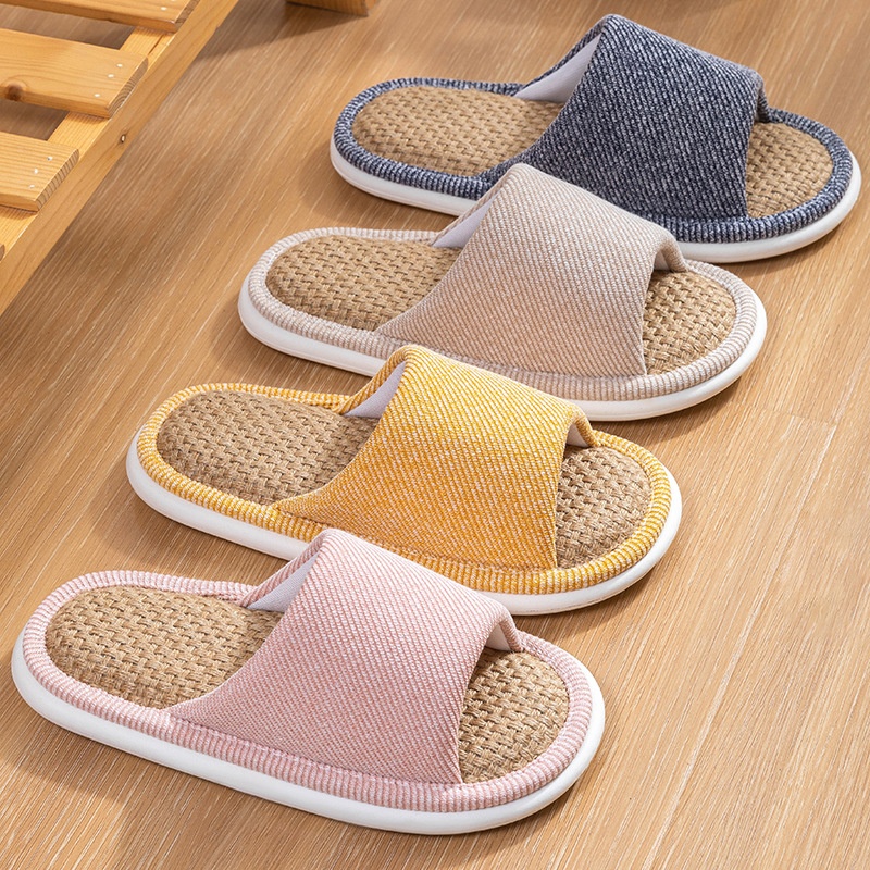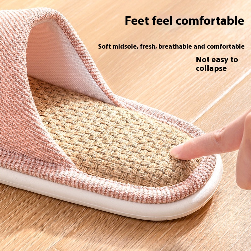 Linen Slippers Women Summer Indoor Home Silent Wooden Floor Cotton Linen Breathable Soft Bottom Non-slip Men's Slippers