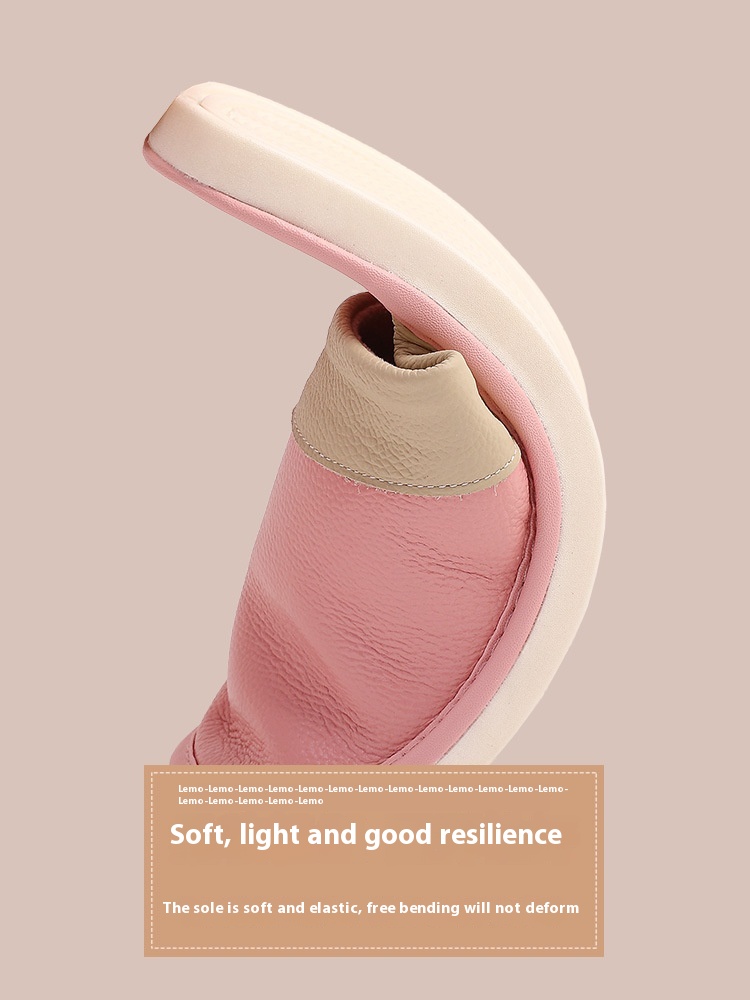 Genuine Leather Baotou Leather Slippers For Men And Women Home Use Spring And Autumn Indoor Cowhide Soft Bottom Non-slip Cotton Slippers