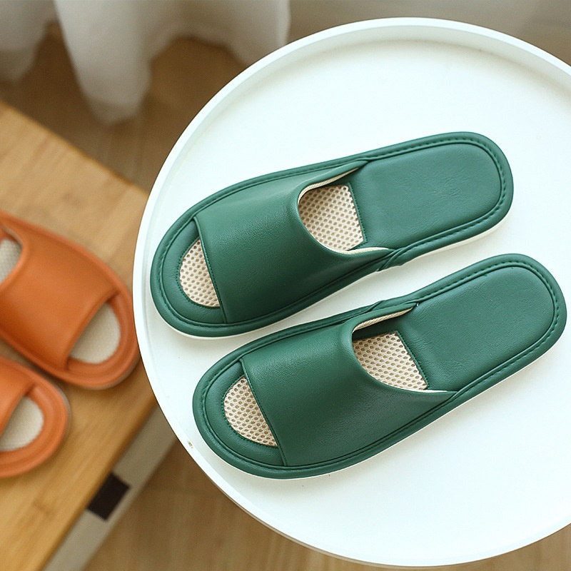Summer Home Female Couple Indoor Home Pu Leather Non-slip Breathable Leather Slippers Men's Home Sandals