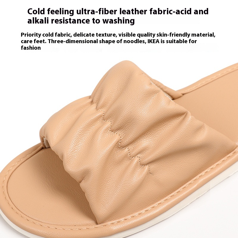 Shit-feeling Leather Slippers For Women Indoor Home Household Summer Non-slip Couple Fashion Pu Leather Sandals For Men