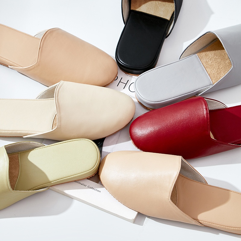 High-end Leather Slippers For Women For Summer Outdoor Wear,High-end Office Slippers For Women Indoor Home,Non-slip Cowhide Sole