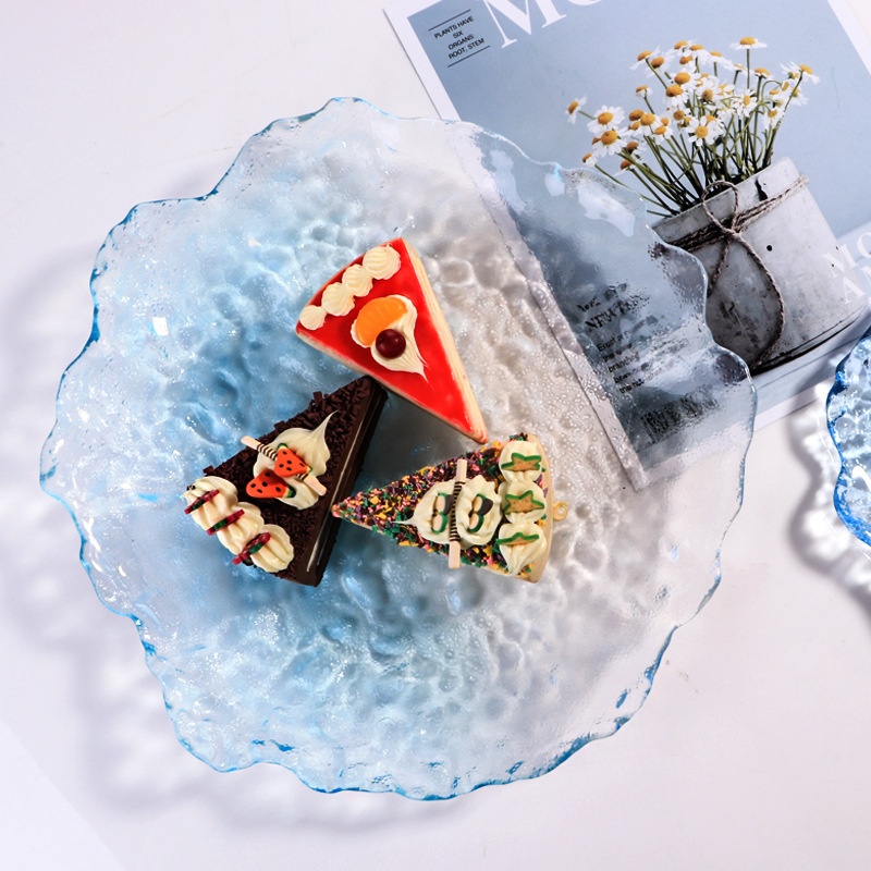 Transparent Pink Ice Dew Glass Plate Large Creative Snack Fruit Plate Breakfast Salad Plate Home Dessert Plate