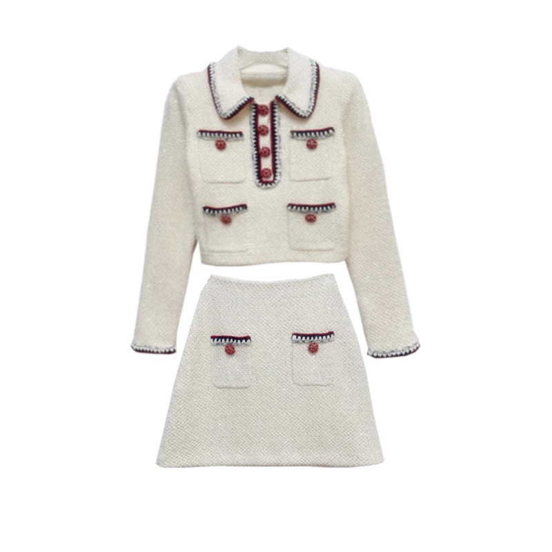 SPAutumn And Winter Style Short Knitted Cardigan Jacket For Women With Small Size A-line Skirt