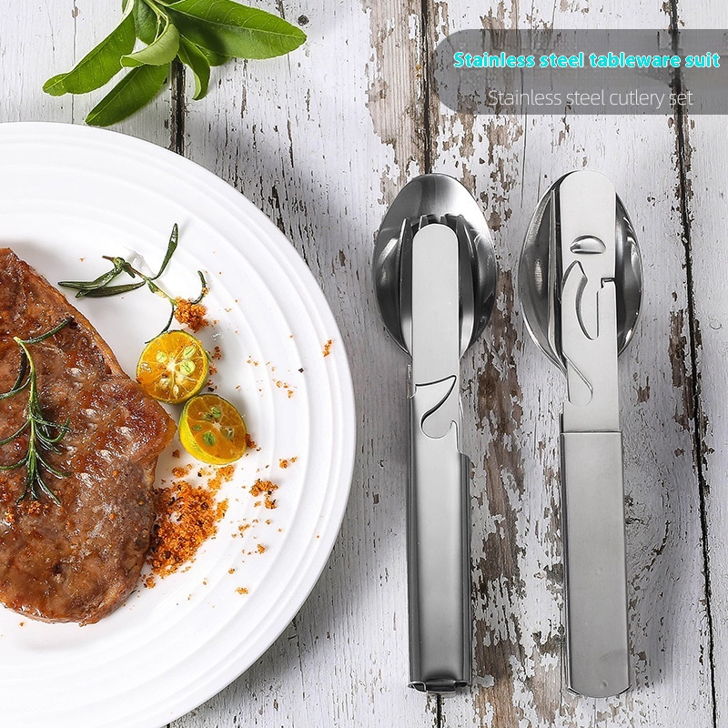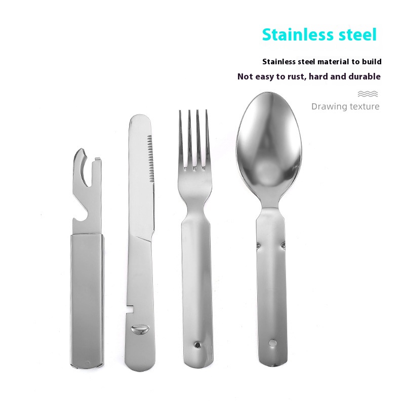 Stainless Steel Cutlery Set Knife, Fork And Spoon Outdoor Four-piece Set Outdoor B B Q Western Food Work Portable Tableware